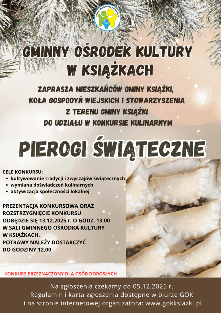Serdecznie zapraszamy do udziału — niech zapach świątecznych pierogów zapełni cały GOK! 🎅🥟✨