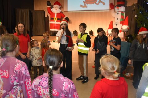 A Grinch…? Tym razem był nim Pani Sołtys Gminy Książki – Anna Nowak, która rozbawiała uczestników pełnym zaangażowaniem i charakterem. Prób sabotażu co prawda nie zabrakło 😉, ale świąteczna atmosfera zwyciężyła!