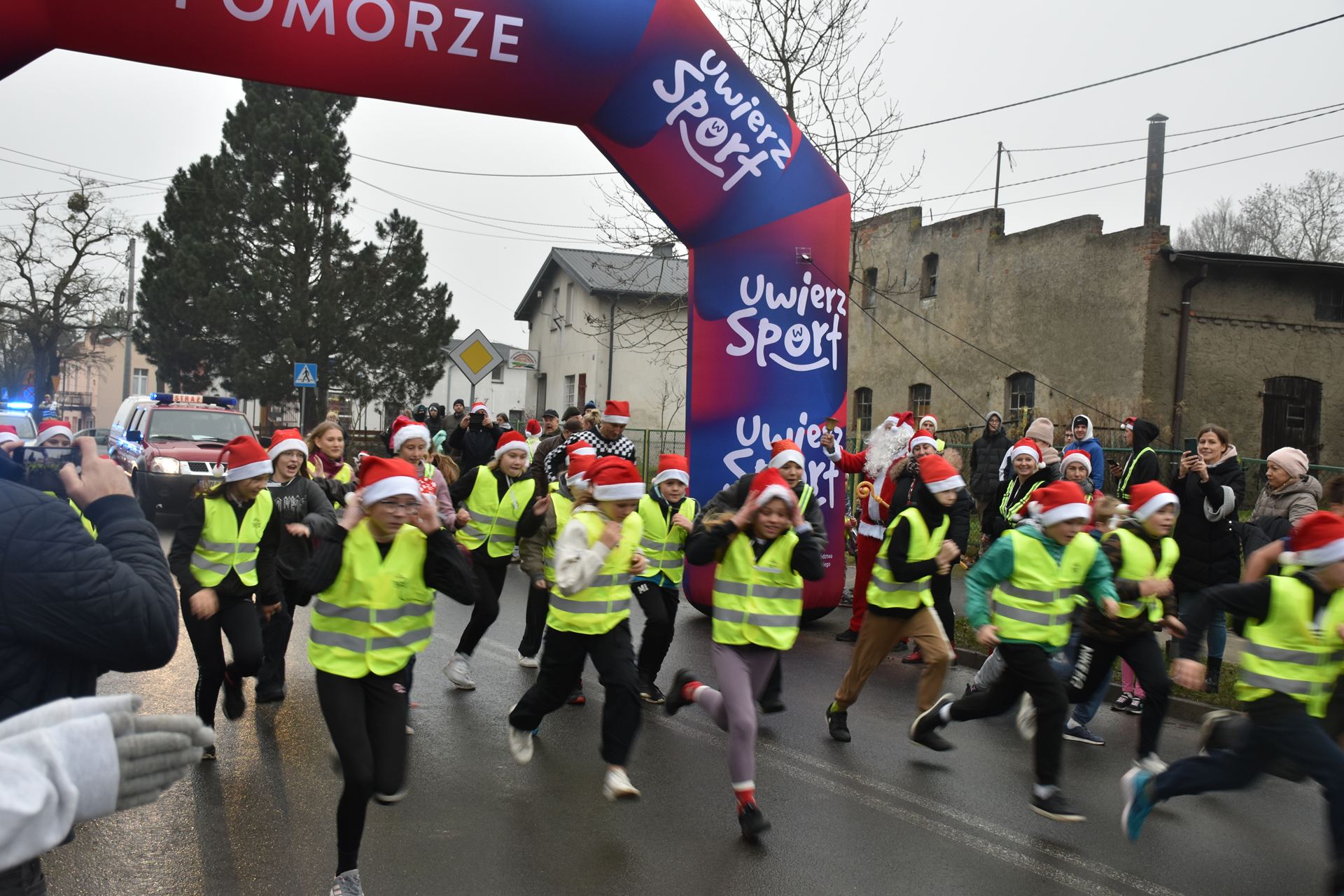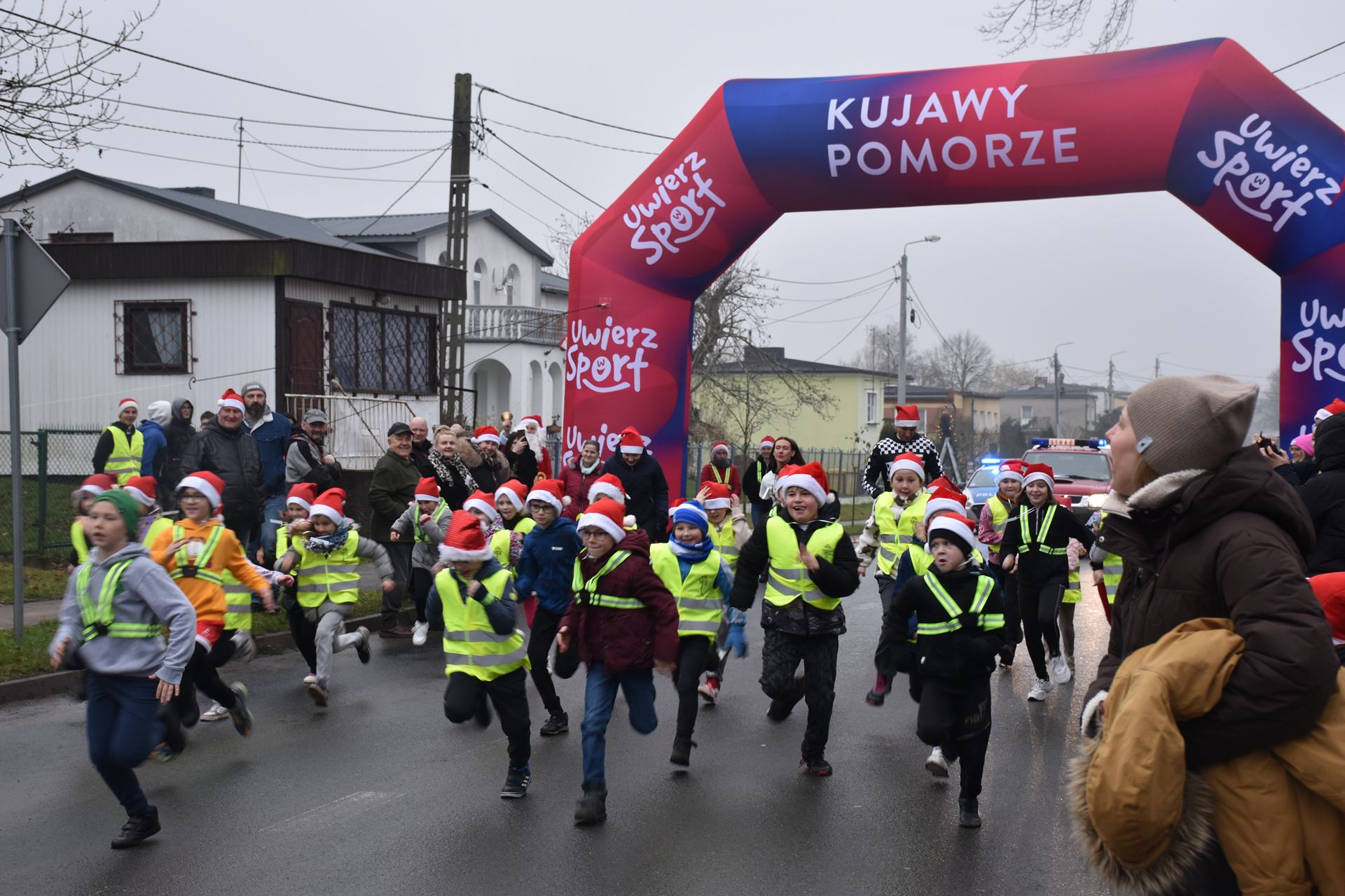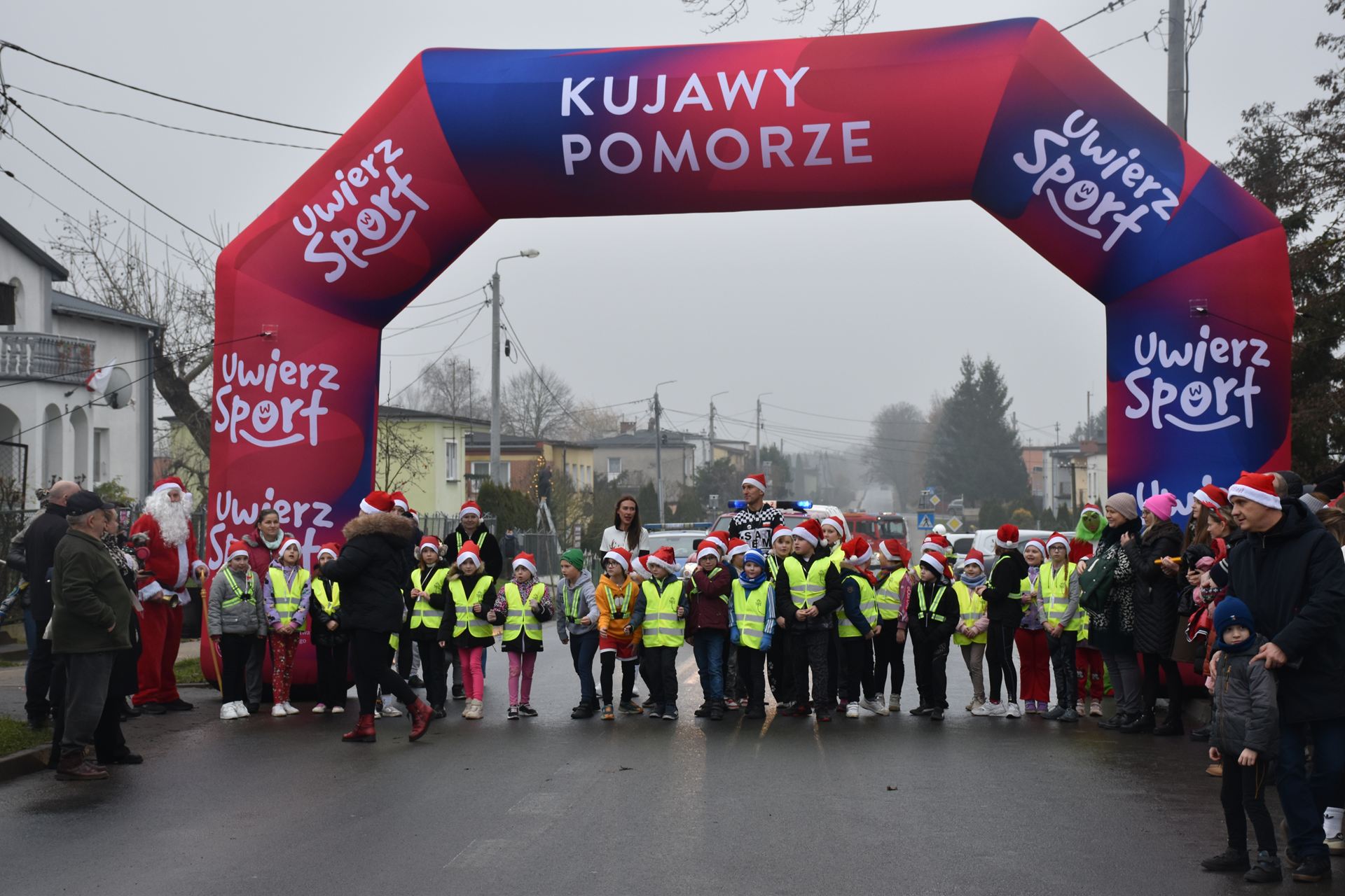 Na starcie stanęli mali i duzi miłośnicy biegania – wszyscy w świetnych humorach i gotowi, by pokonać trasę w świątecznym stylu.