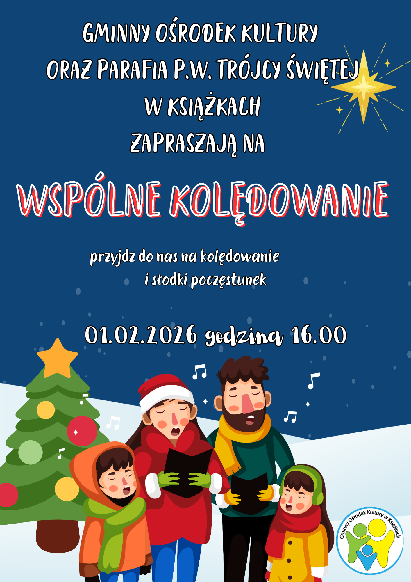 Gminny Ośrodek Kultury oraz Parafia pw. Trójcy Świętej w Książkach serdecznie zapraszają wszystkich mieszkańców – małych i dużych 😊 – na wspólne kolędowanie 🎄