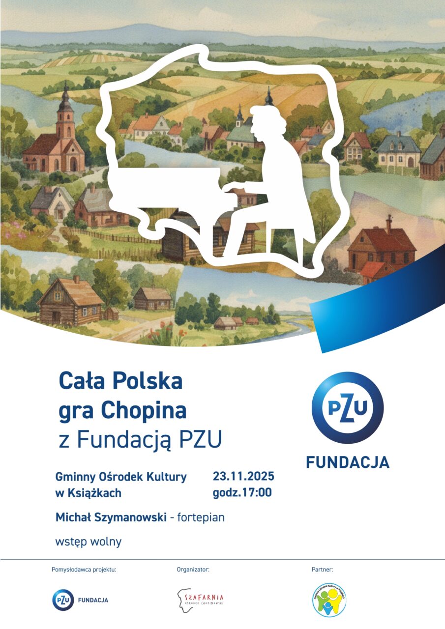 Gminny Ośrodek Kultury w Książkach oraz Ośrodek Chopinowski w Szafarni serdecznie zapraszają na koncert w ramach ogólnopolskiego projektu „Cała Polska gra Chopina”, organizowanego i finansowanego przez Fundację PZU.