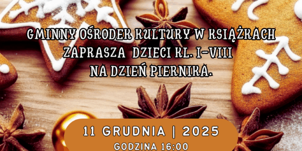 🎄🍪 Gminny Ośrodek Kultury w Książkach zaprasza dzieci z klas I–VIII na Dzień Piernika!Już 11 grudnia o godzinie 16:00 w…