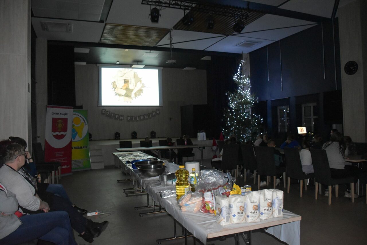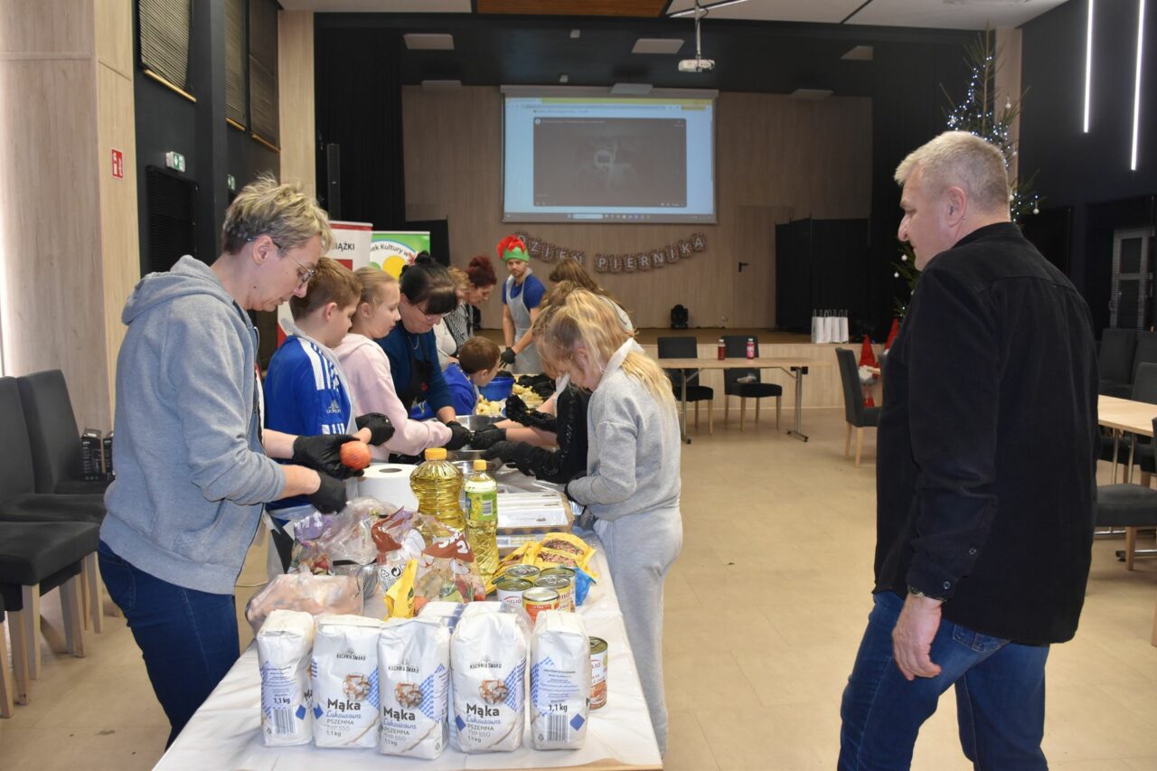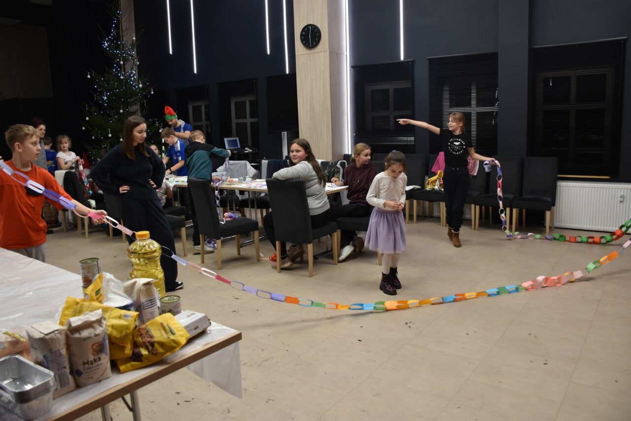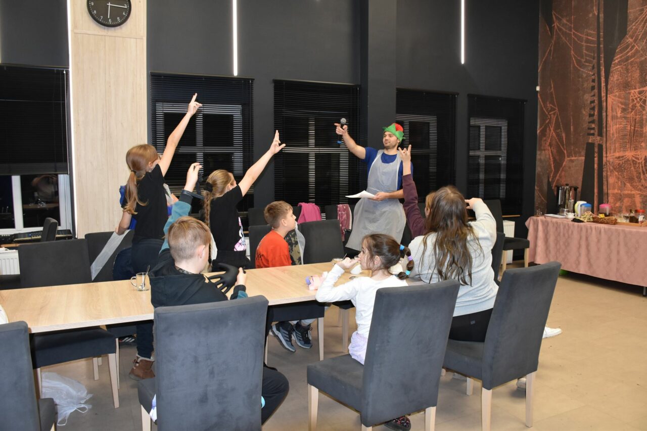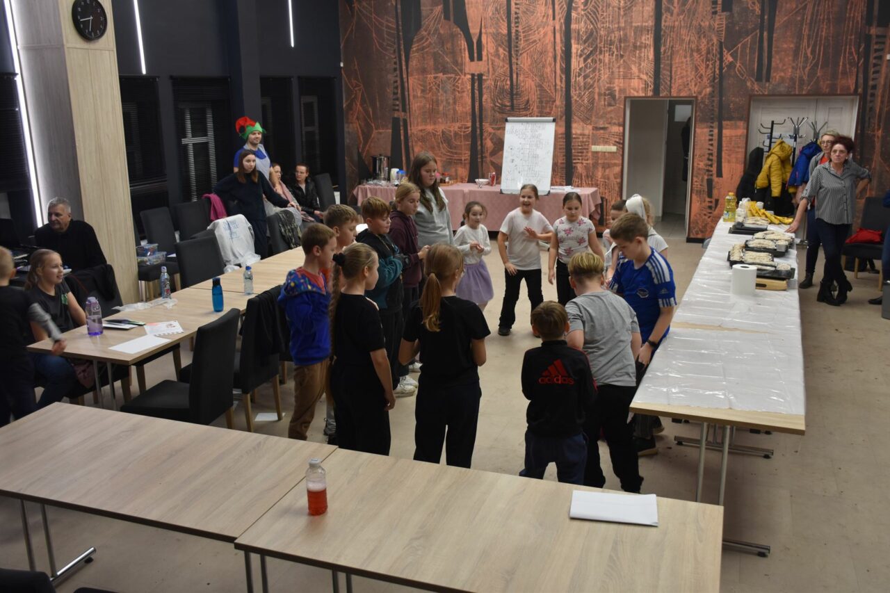 W czasie, gdy pierniki trafiały do piekarnika, dzieci nie próżnowały – czas umilał im Świąteczny Skrzat Natan, który zaprosił najmłodszych do wspólnych zabaw integracyjnych, m.in. rozwiązywania piernikowej krzyżówki i aktywności tematycznych związanych z tym wyjątkowym dniem.