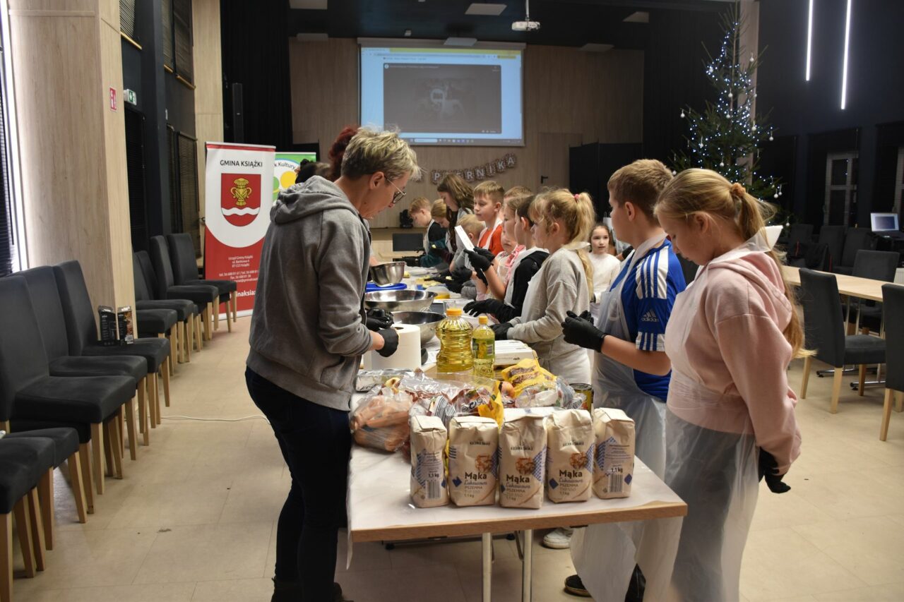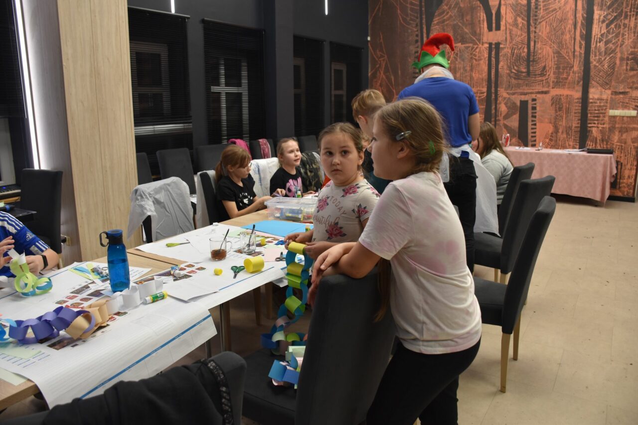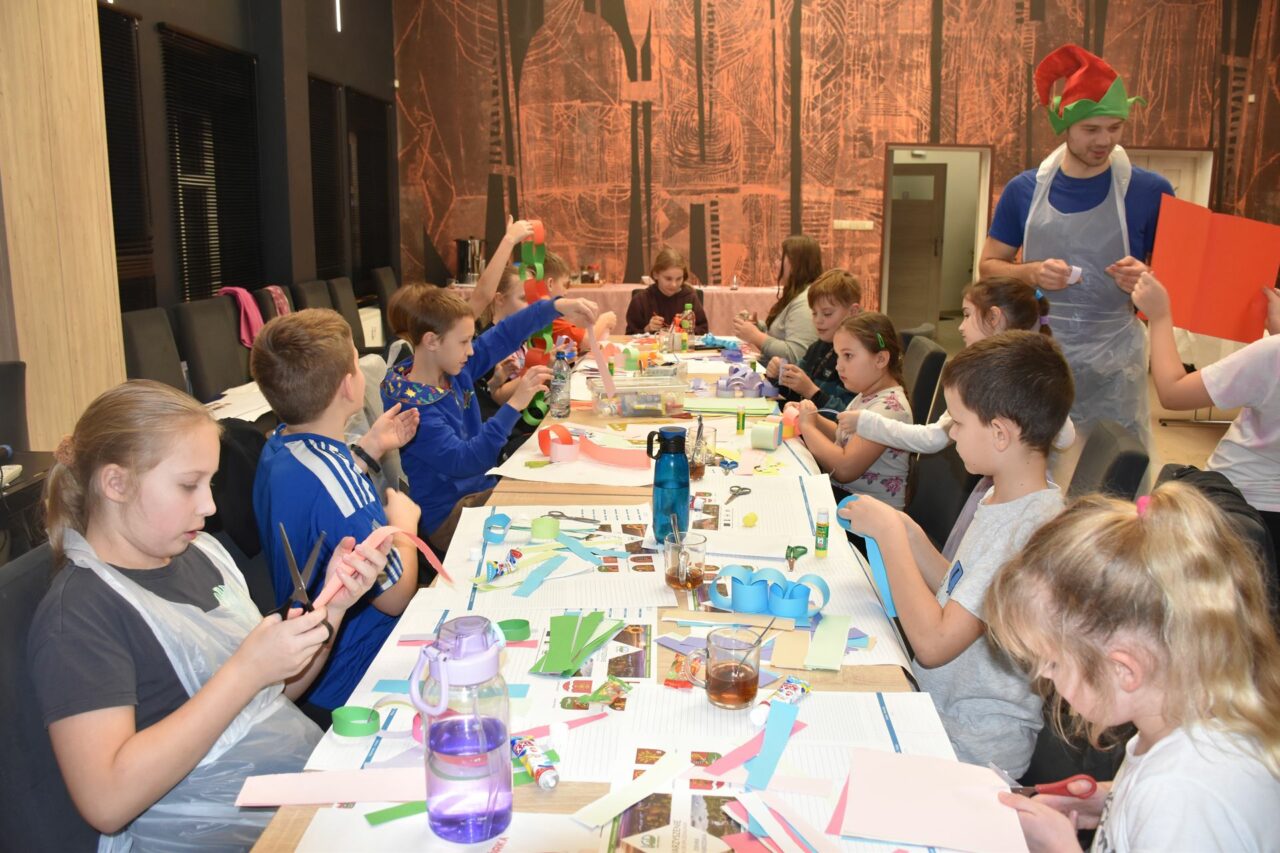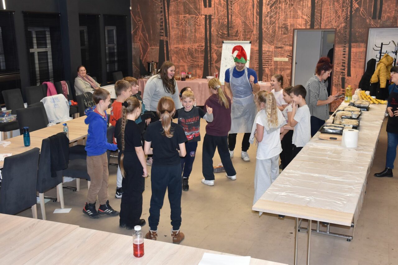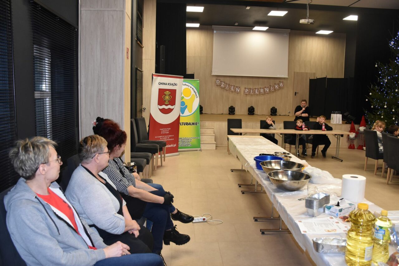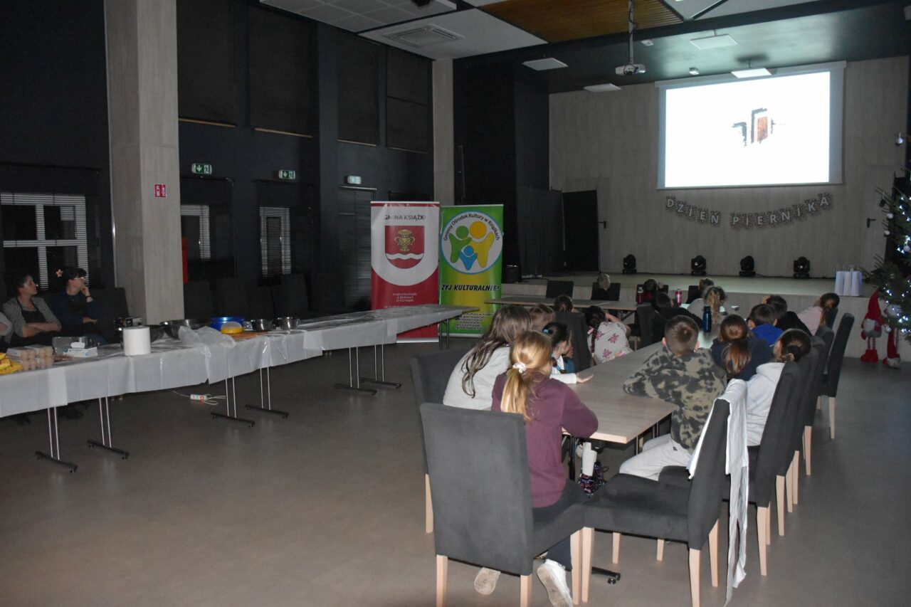 W czasie, gdy pierniki trafiały do piekarnika, dzieci nie próżnowały – czas umilał im Świąteczny Skrzat Natan, który zaprosił najmłodszych do wspólnych zabaw integracyjnych, m.in. rozwiązywania piernikowej krzyżówki i aktywności tematycznych związanych z tym wyjątkowym dniem.