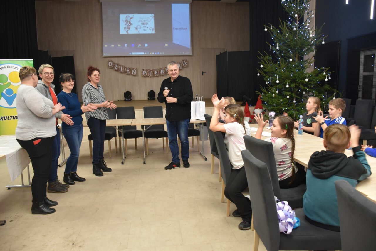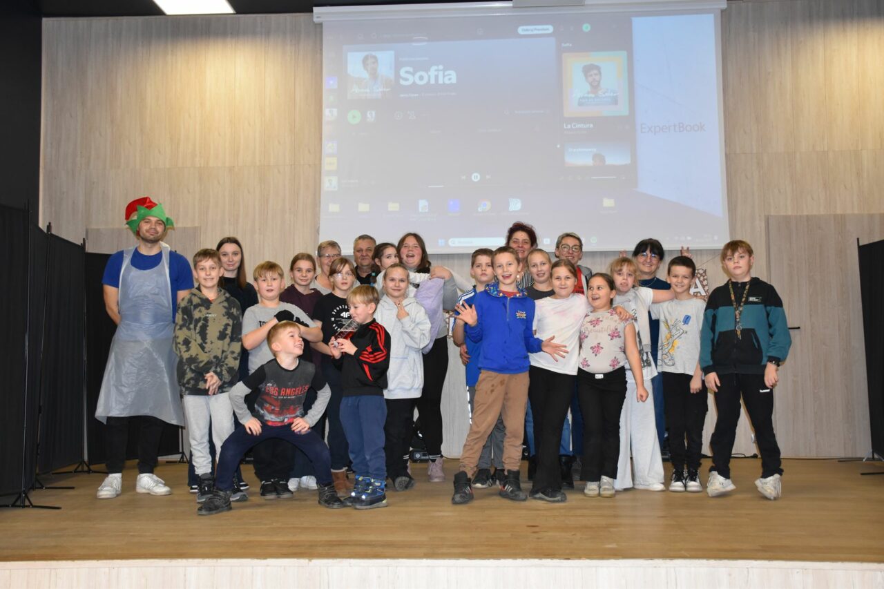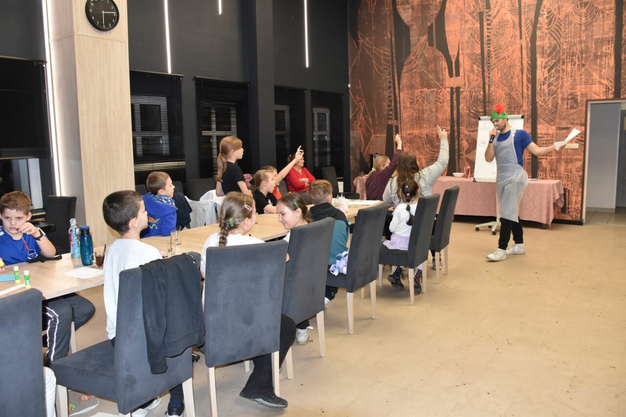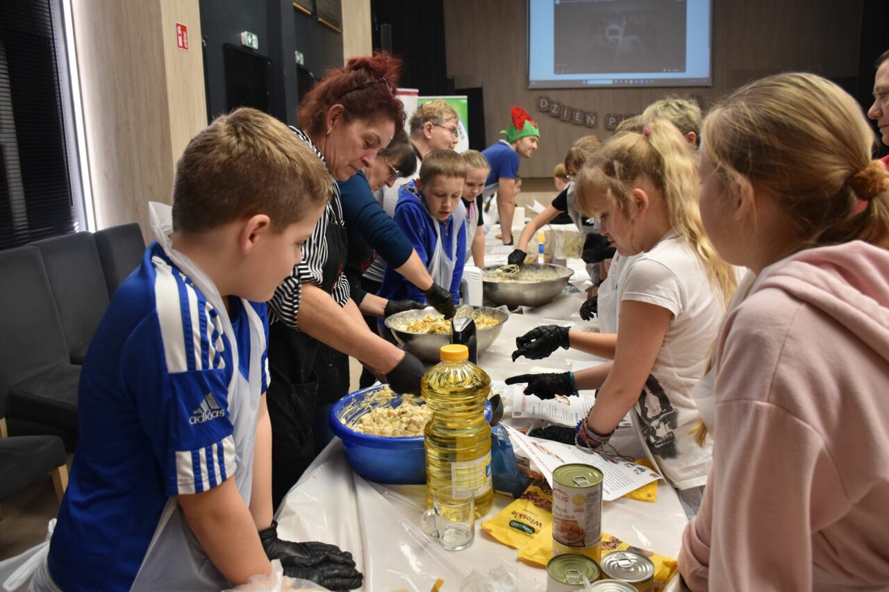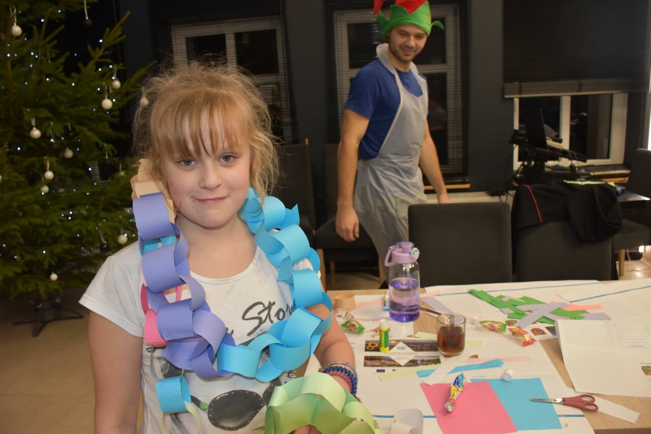 W czasie, gdy pierniki trafiały do piekarnika, dzieci nie próżnowały – czas umilał im Świąteczny Skrzat Natan, który zaprosił najmłodszych do wspólnych zabaw integracyjnych, m.in. rozwiązywania piernikowej krzyżówki i aktywności tematycznych związanych z tym wyjątkowym dniem.