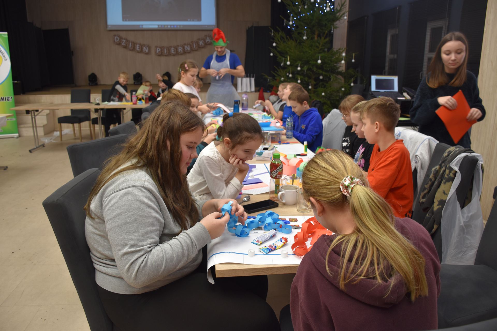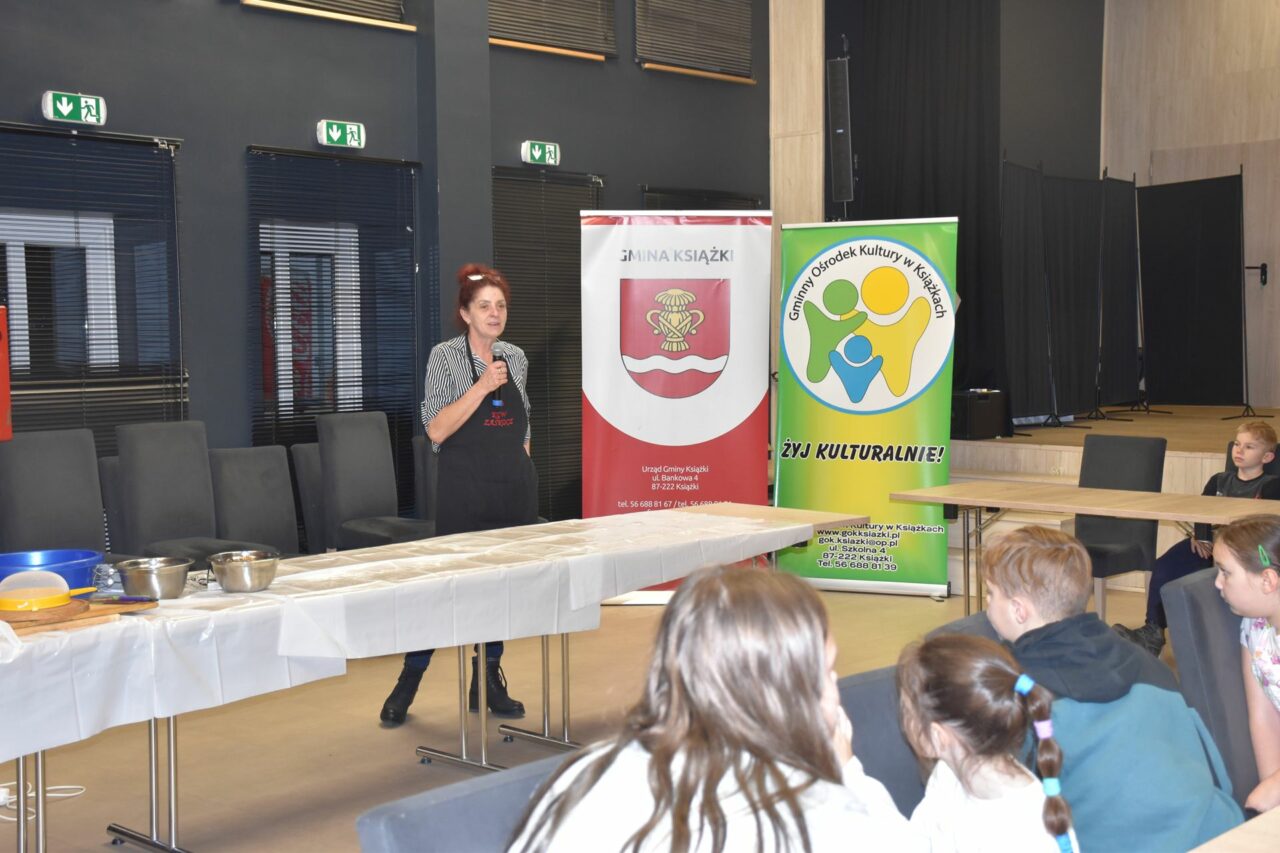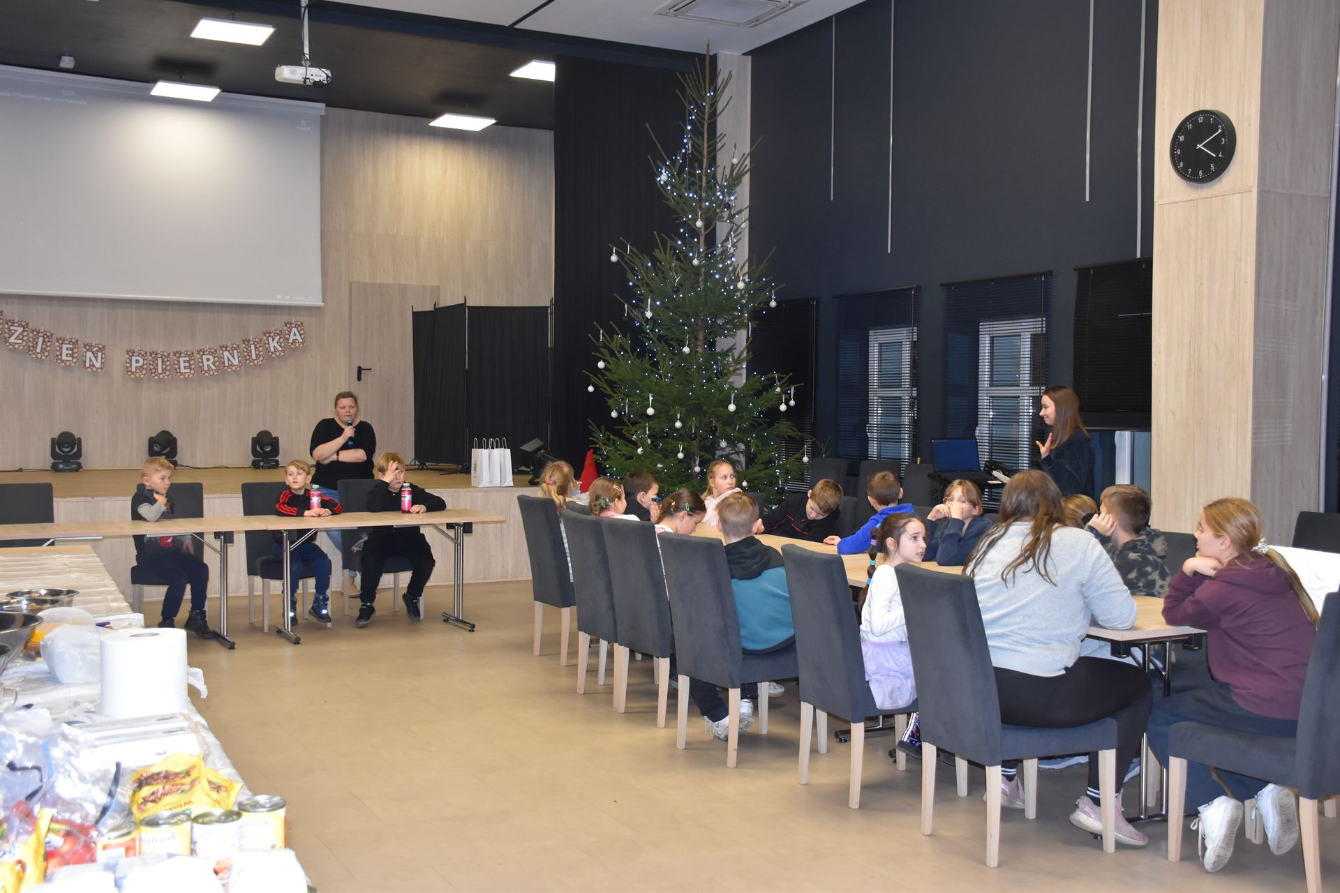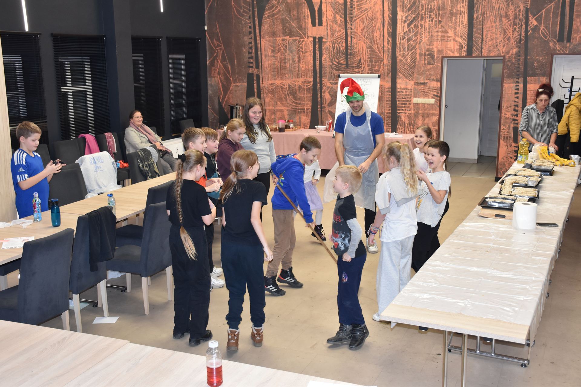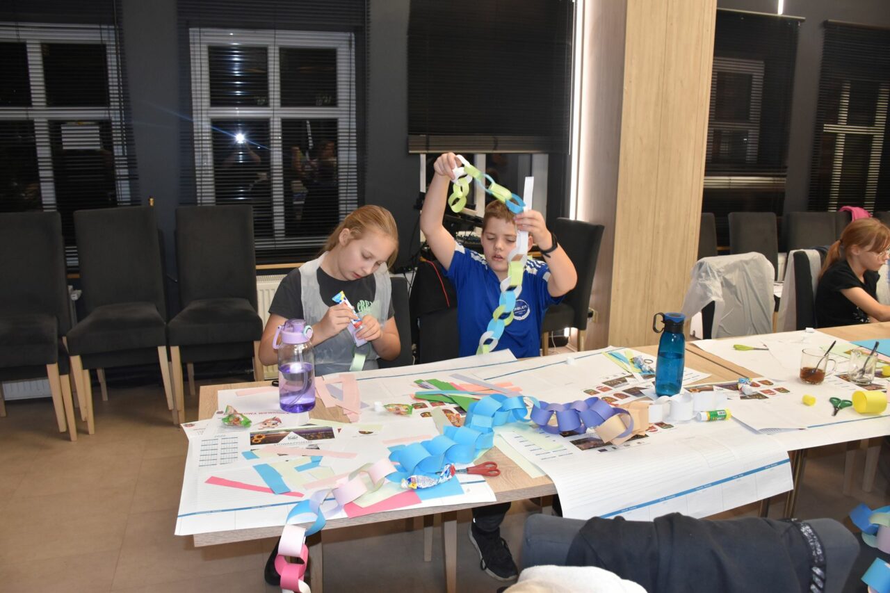 W czasie, gdy pierniki trafiały do piekarnika, dzieci nie próżnowały – czas umilał im Świąteczny Skrzat Natan, który zaprosił najmłodszych do wspólnych zabaw integracyjnych, m.in. rozwiązywania piernikowej krzyżówki i aktywności tematycznych związanych z tym wyjątkowym dniem.