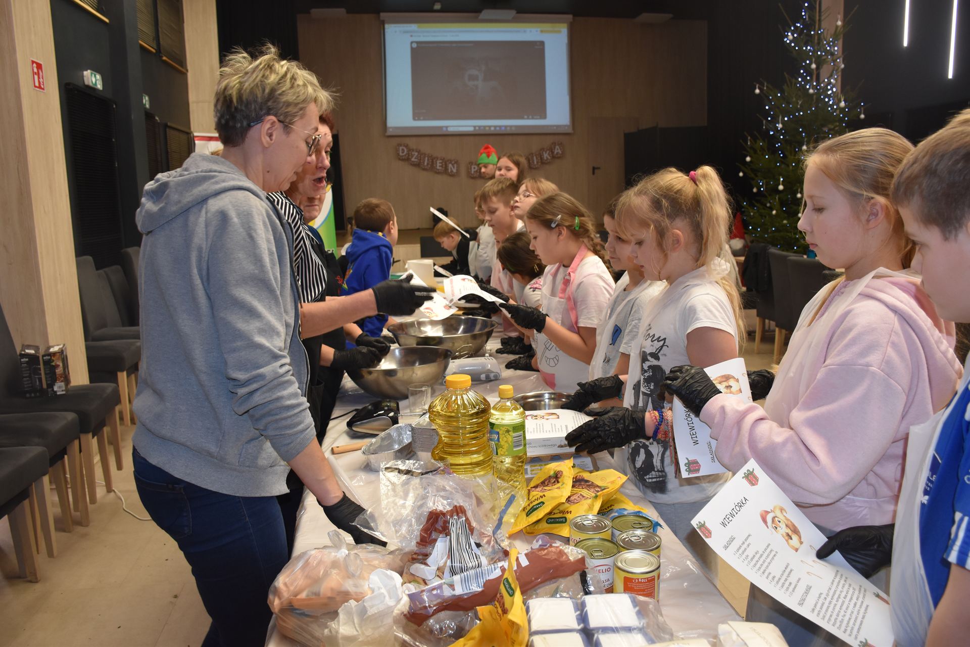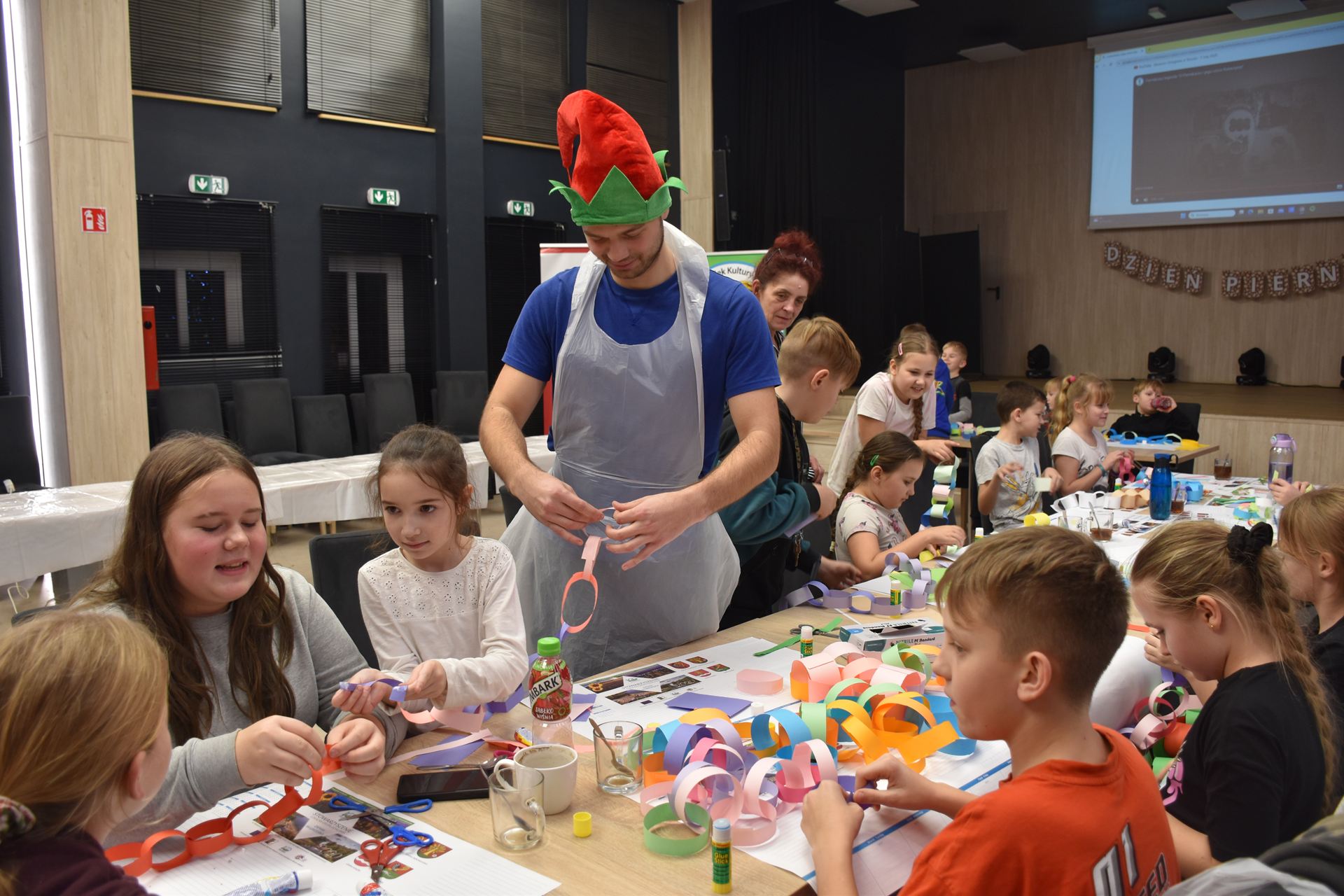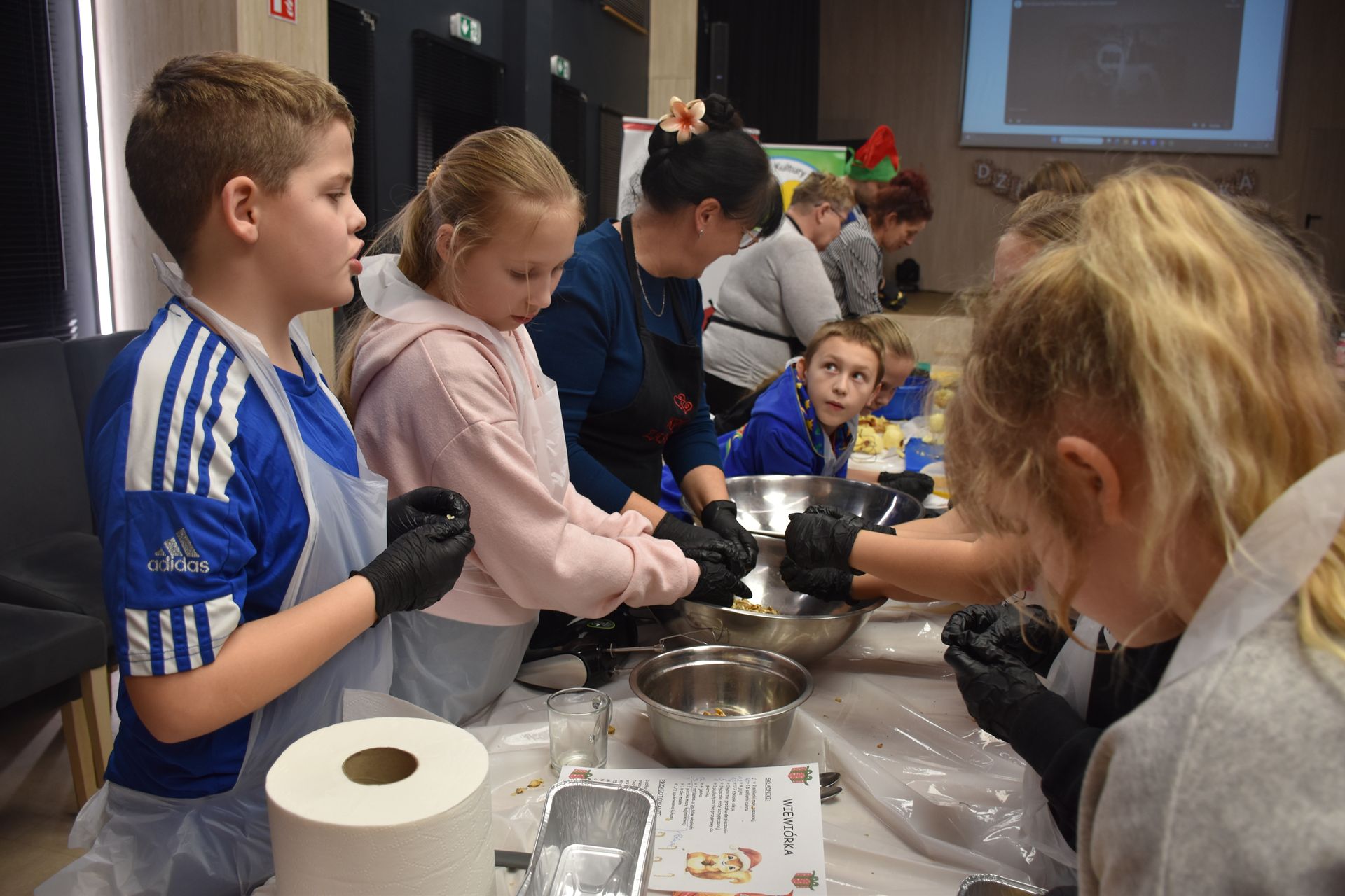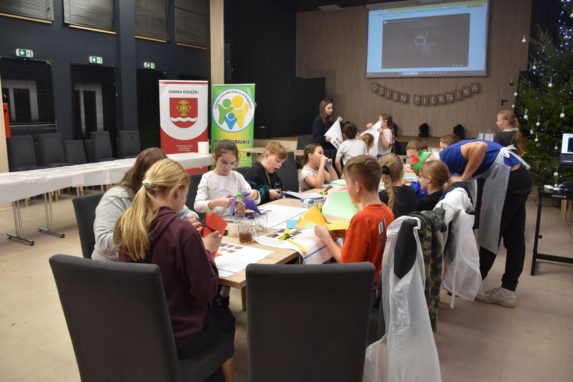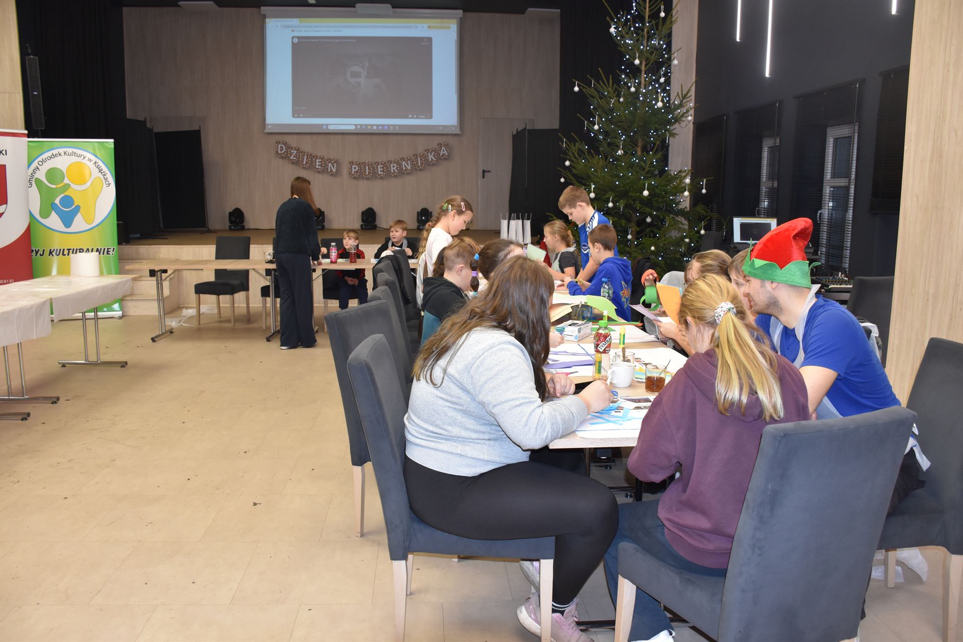 W czasie, gdy pierniki trafiały do piekarnika, dzieci nie próżnowały – czas umilał im Świąteczny Skrzat Natan, który zaprosił najmłodszych do wspólnych zabaw integracyjnych, m.in. rozwiązywania piernikowej krzyżówki i aktywności tematycznych związanych z tym wyjątkowym dniem.
