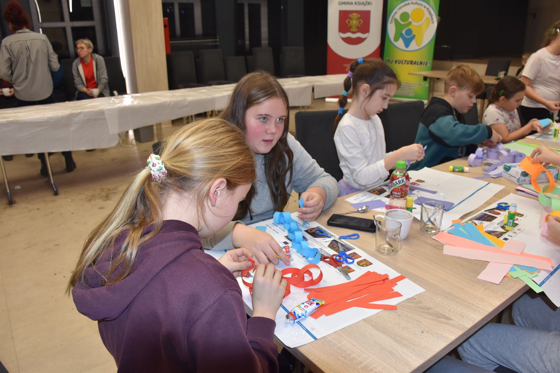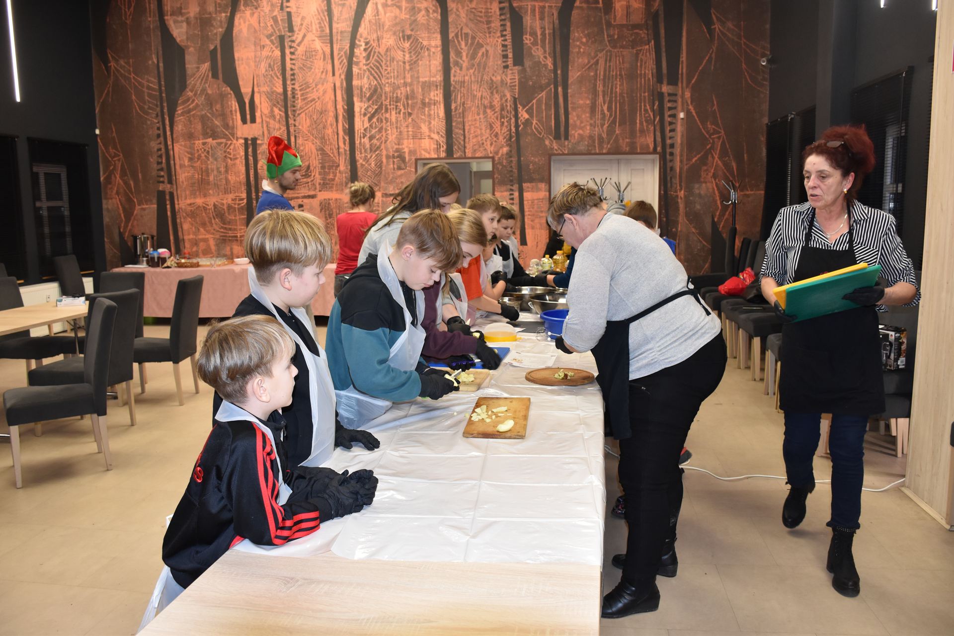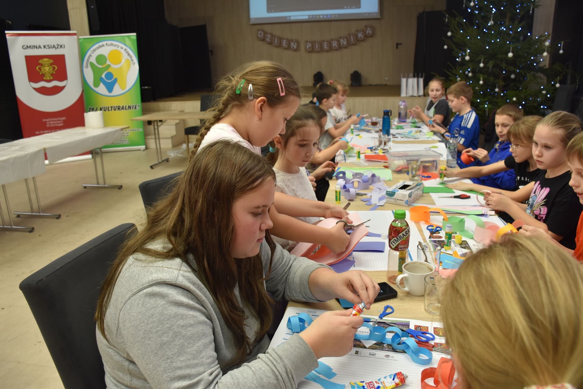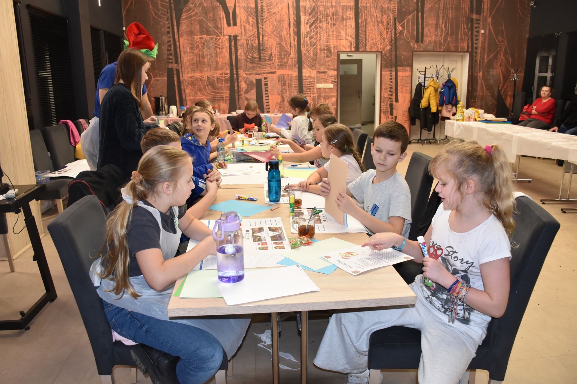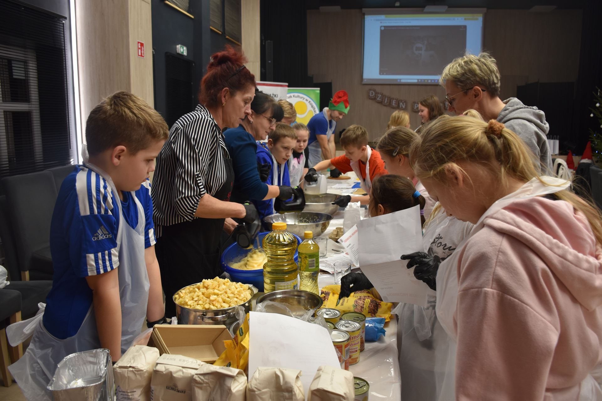 W czasie, gdy pierniki trafiały do piekarnika, dzieci nie próżnowały – czas umilał im Świąteczny Skrzat Natan, który zaprosił najmłodszych do wspólnych zabaw integracyjnych, m.in. rozwiązywania piernikowej krzyżówki i aktywności tematycznych związanych z tym wyjątkowym dniem.