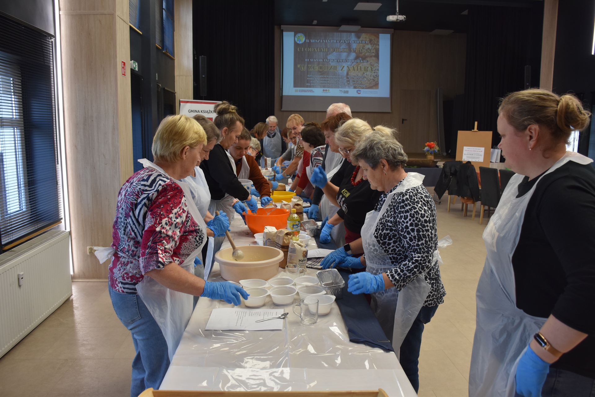 27 września 2025 r. w sali Gminnego Ośrodka Kultury w Książkach odbyły się warsztaty pieczenia chleba w ramach projektu „W zgodzie z naturą”. Spotkanie zgromadziło liczne grono uczestników, a co nas szczególnie cieszy – wśród wielu Pań znalazło się również dwóch Panów, którzy z zapałem zgłębiali tajniki domowego pieczywa. 👨🍳