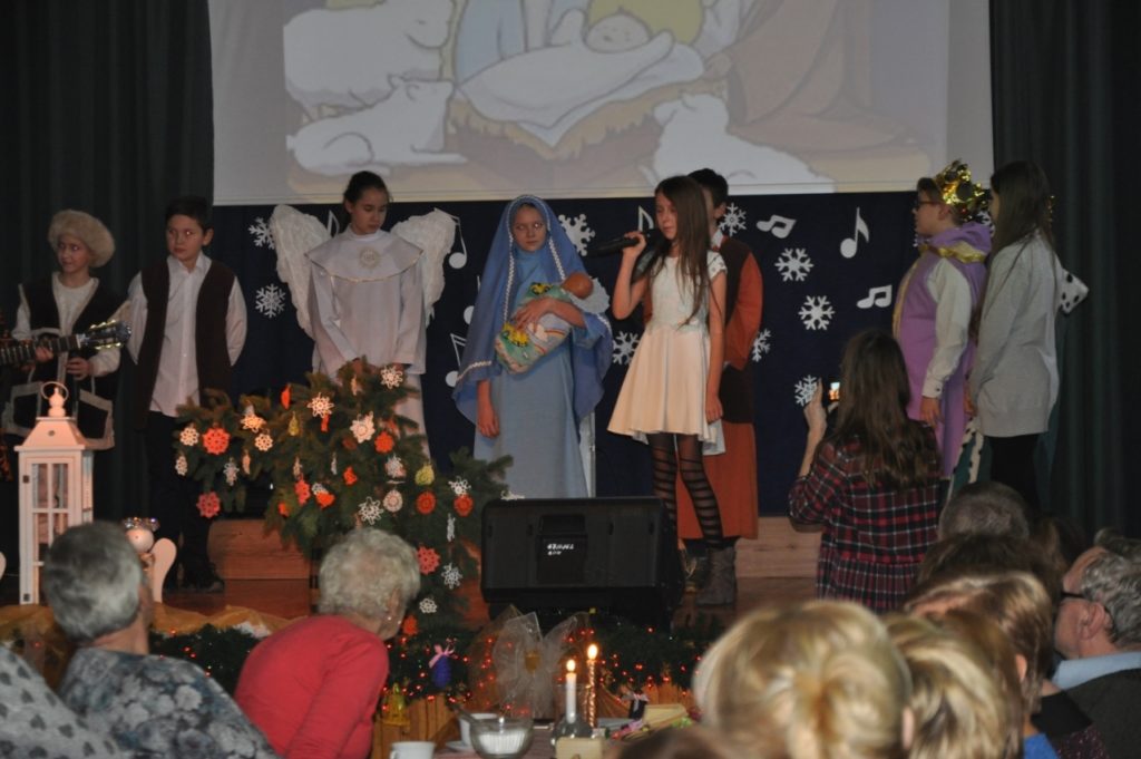 Dzisiaj w naszym Gminnym Ośrodku Kultury odbył się koncert kolęd i pastorałek pt. „Wspólne kolędowanie”. Spotkanie rozpoczęły jasełka przygotowanie przez członków szkolnego koła Caritas działającego przy Szkole Podstawowej w Książkach pod opieką Pani Magdy Kesler. Na scenie zaśpiewały i zagrały również zespoły Książkowianka oraz NowiMy. Dzięki uprzejmości uczestników spotkania – Państwa Sacha, przed występem Magdy Sacha poznaliśmy historię dwóch kolęd – Dzisiaj w Betlejem oraz Przybieżeli do Betlejem pasterze. Uczestnicy nie tylko włączali się we wspólne kolędowanie ale mieli także okazję na zakończenie stworzyć profesjonalny chór, który wykonał utwory „Tryumfy Króla Niebieskiego” oraz 12 zwrotek „Oj Maluśki” z partiami solowymi. Poczuciu rodzinnej atmosfery pomagała herbata, kawa oraz ciastka i ciasta przygotowane przez uczestników spotkania oraz Gminny Ośrodek Kultury.