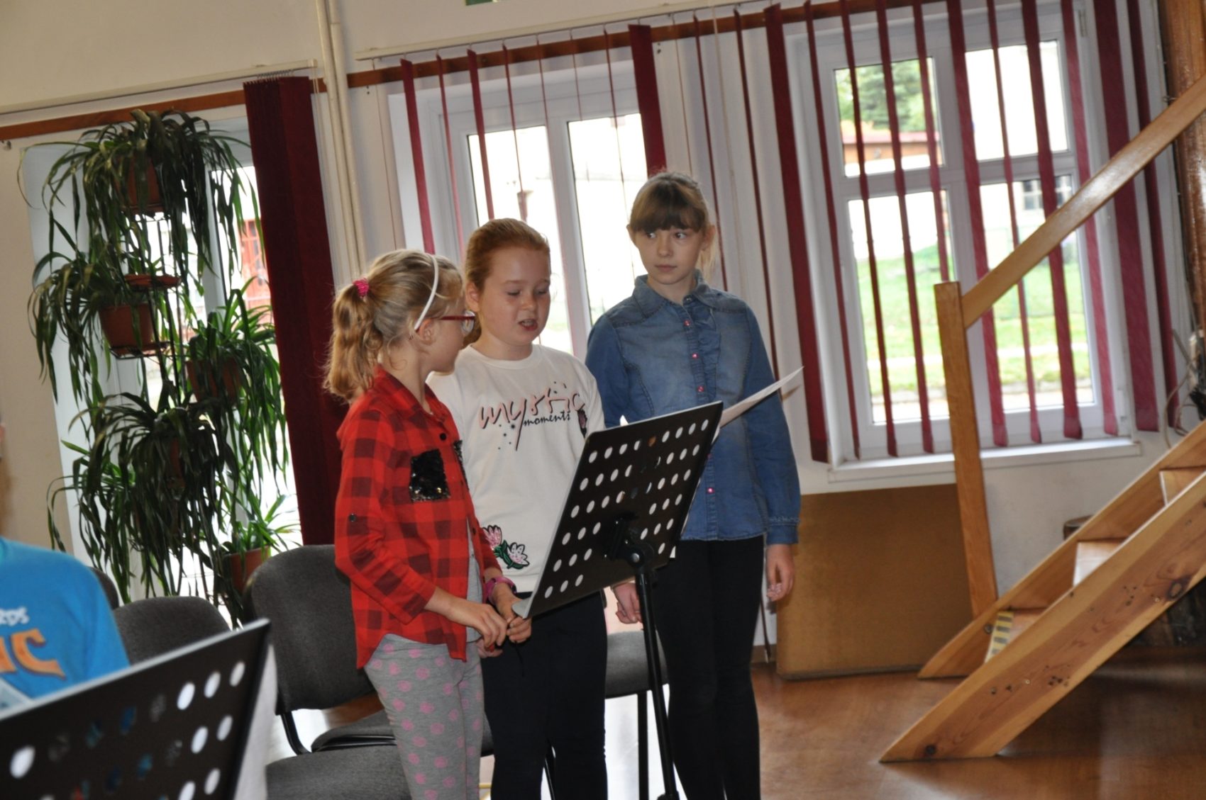 W czwartkowe zajęcia poświęcone nauce śpiewu młodsze dzieci szlifowały naukę prawidłowego czytania tekstu piosenki, którą przygotowują na Wielką Orkiestrę Świątecznej Pomocy.