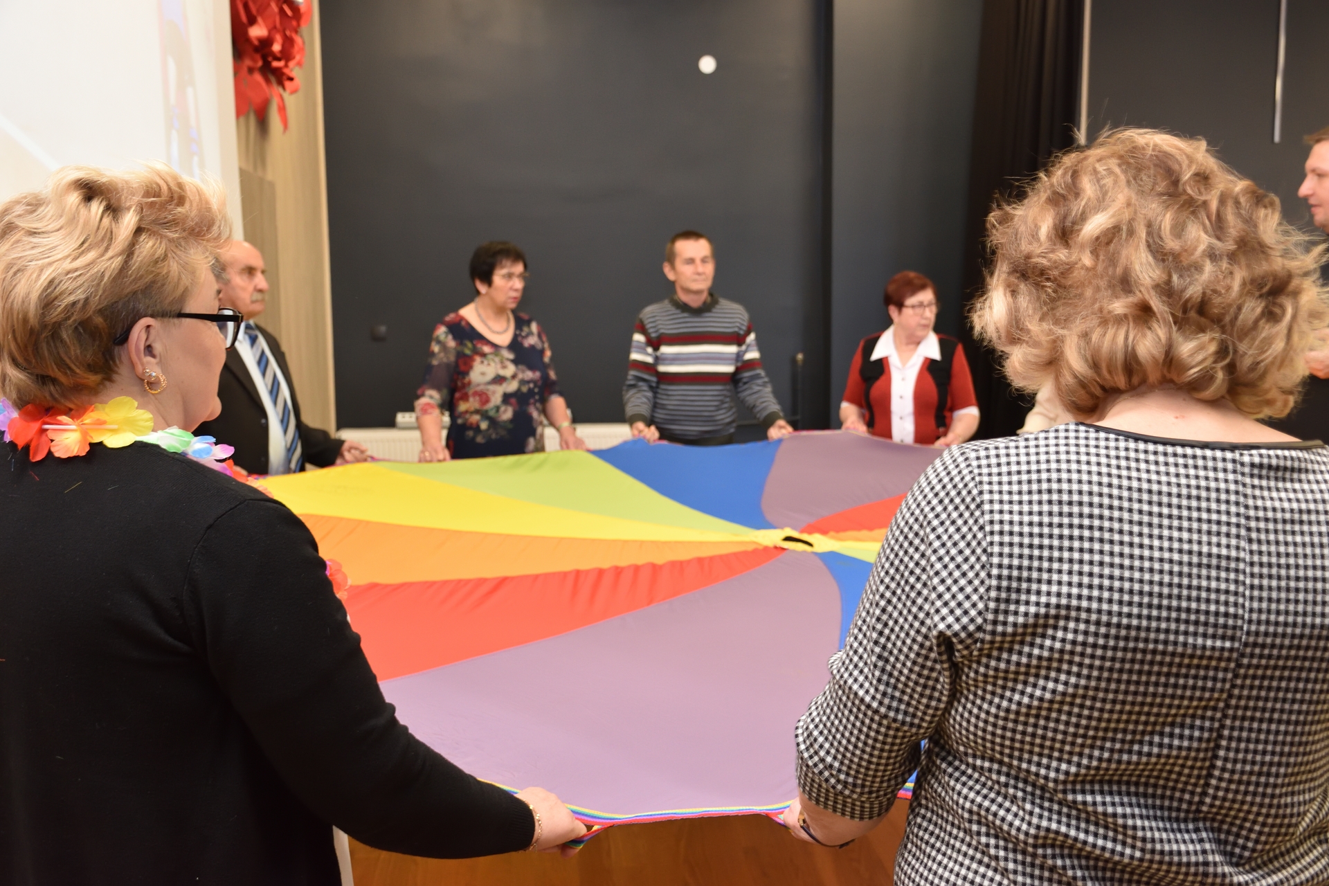 Po przemowach przyszedł czas na degustację potraw. Dania przygotowane pod czujnym okiem Pani Eli były przepyszne. W trakcie degustacji na ekranie scenicznym GOK prezentowane były wszystkie zdjęcia wykonane podczas zajęć realizowanych w ramach projektu. Była to świetna okazja do wspominania przez uczestników mile i owocnie spędzonych chwil. W czasie degustacji Dyrektor GOK wręczył nagrody zwycięzcom zawodów sportowych, które również odbyły się w ramach projektu. Na zakończenie spotkania uczestnicy wzięli udział w zabawach przygotowanych przez DJ’a i Wodzireja Andrzeja Nowaka z firmy AndNow Projekt. Wśród przygotowanych zadań znalazł się m.in. quiz dotyczący projektu, gminy a także Gminnego Ośrodka Kultury.