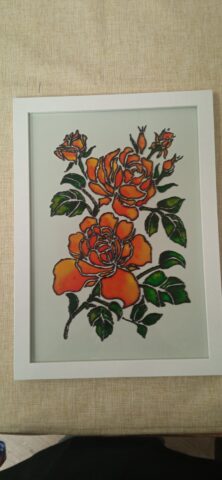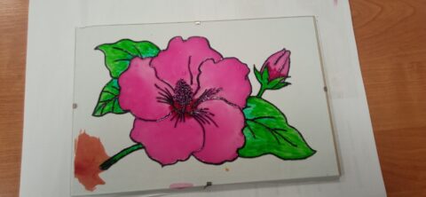 Za pomocą konturówek, farb i szablonów powstawały piękne kompozycje kwiatowe i kolorowe zdobienia, które z każdą minutą nabierały wyjątkowego charakteru.
