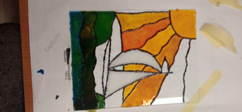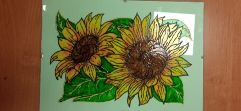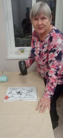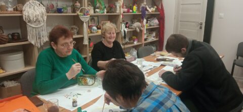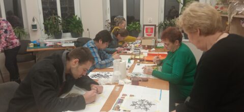 Podczas kolejnego spotkania Klubu Węzełek uczestnicy kontynuowali pracę z malowaniem na szkle 🎨