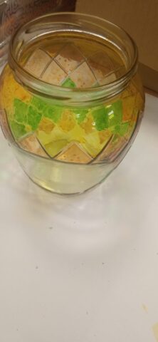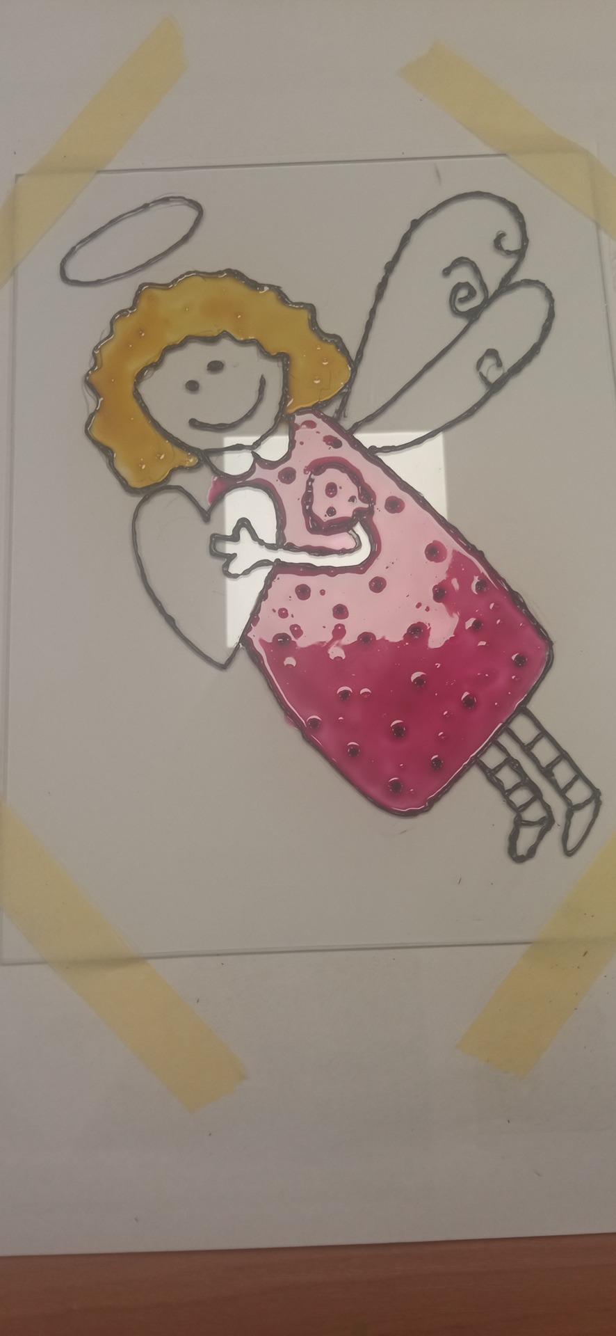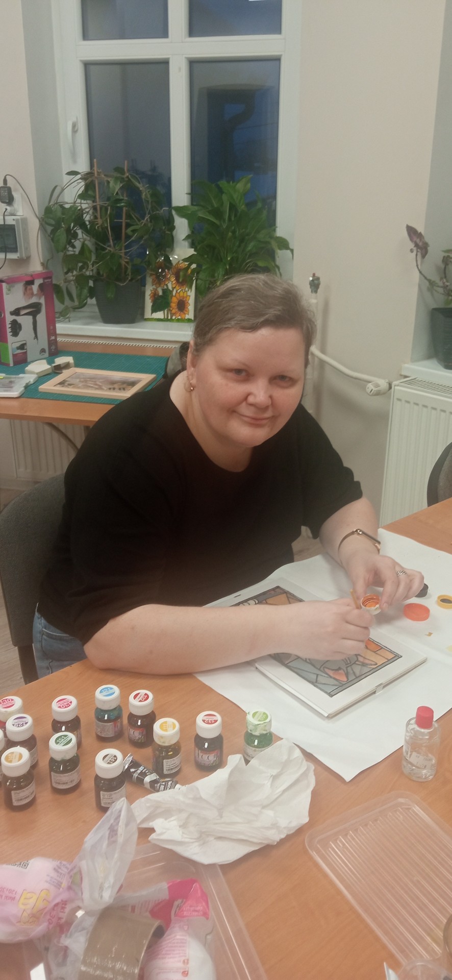 Uczestniczki z ogromną precyzją i cierpliwością tworzyły barwne kompozycje inspirowane witrażami, pracując z farbami do szkła i konturówkami.