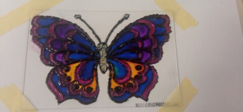 Zajęcia wymagały precyzji, cierpliwości i wyczucia koloru – najpierw powstawały kontury, a następnie prace były wypełniane barwami, tworząc efekt przypominający prawdziwe witraże. Każda z prac była wyjątkowa i pełna indywidualnego charakteru ✨