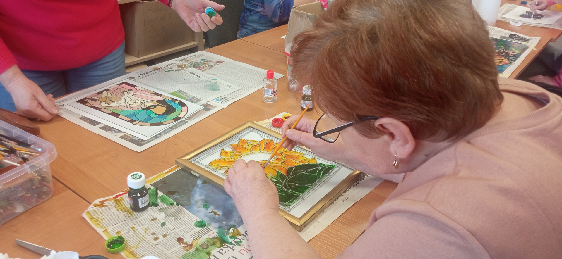 Podczas kolejnego spotkania Klubu Rękodzieła Artystycznego Węzełek uczestniczki miały okazję spróbować swoich sił w malowaniu techniką witrażową na szkle 😊