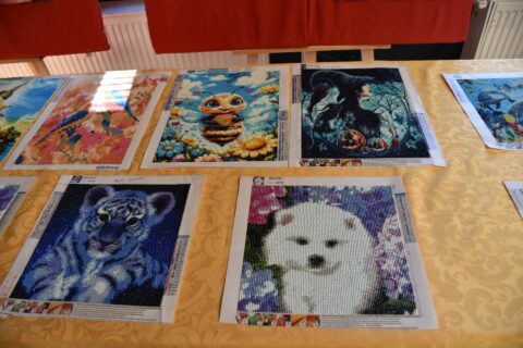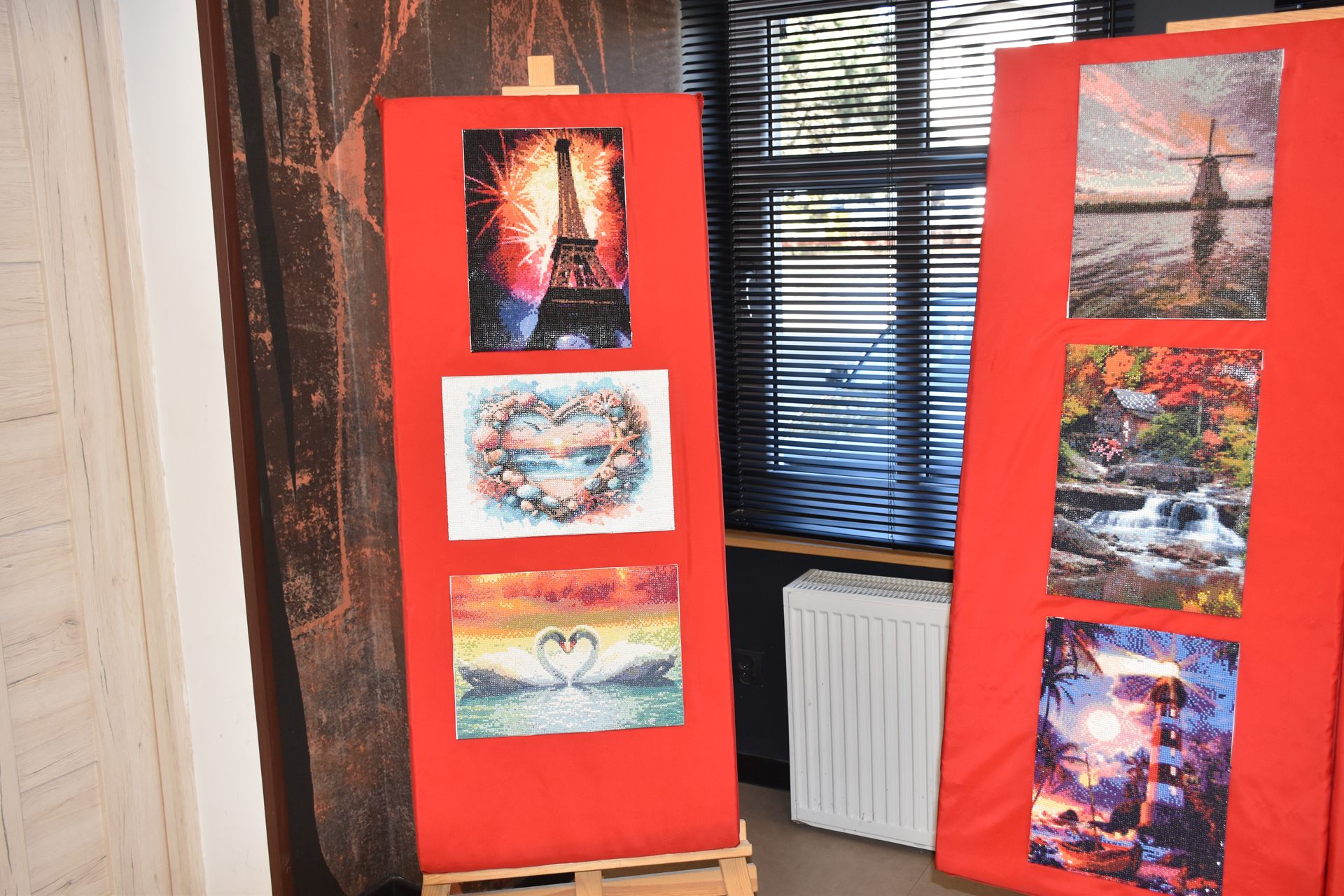 Autorki podzieliły się z uczestnikami nie tylko swoimi pięknymi pracami, ale również opowiedziały o pasji, cierpliwości i precyzji, jakie towarzyszą tworzeniu haftu diamentowego.