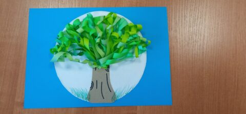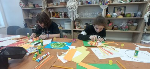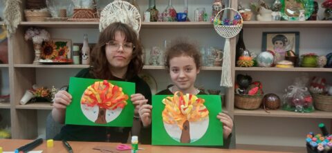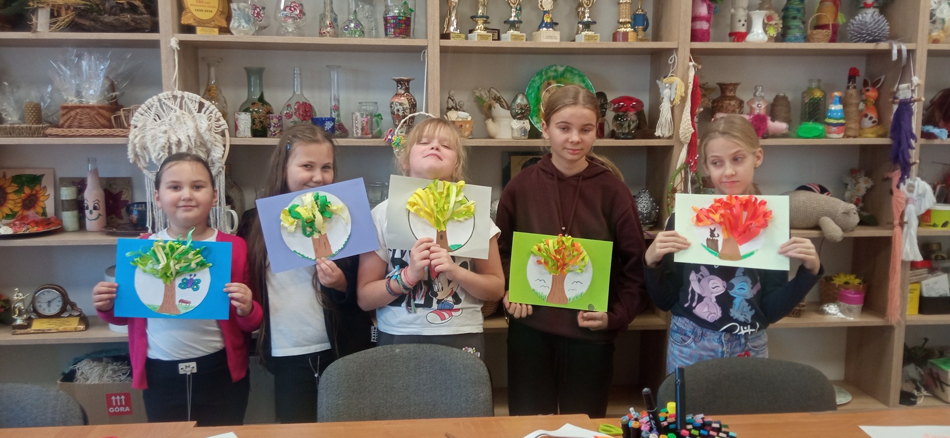 Pierwszym zadaniem uczestników było stworzenie kolorowych, przestrzennych jesiennych drzewek z papieru. 🌈 Każde z nich inne – pełne fantazji, barw i pomysłów! Dzieci z zaangażowaniem cieły, kleiły i skręcały papierowe paski, by zamienić je w piękne korony drzew, które teraz ozdabiają naszą pracownię. 🌿✂️