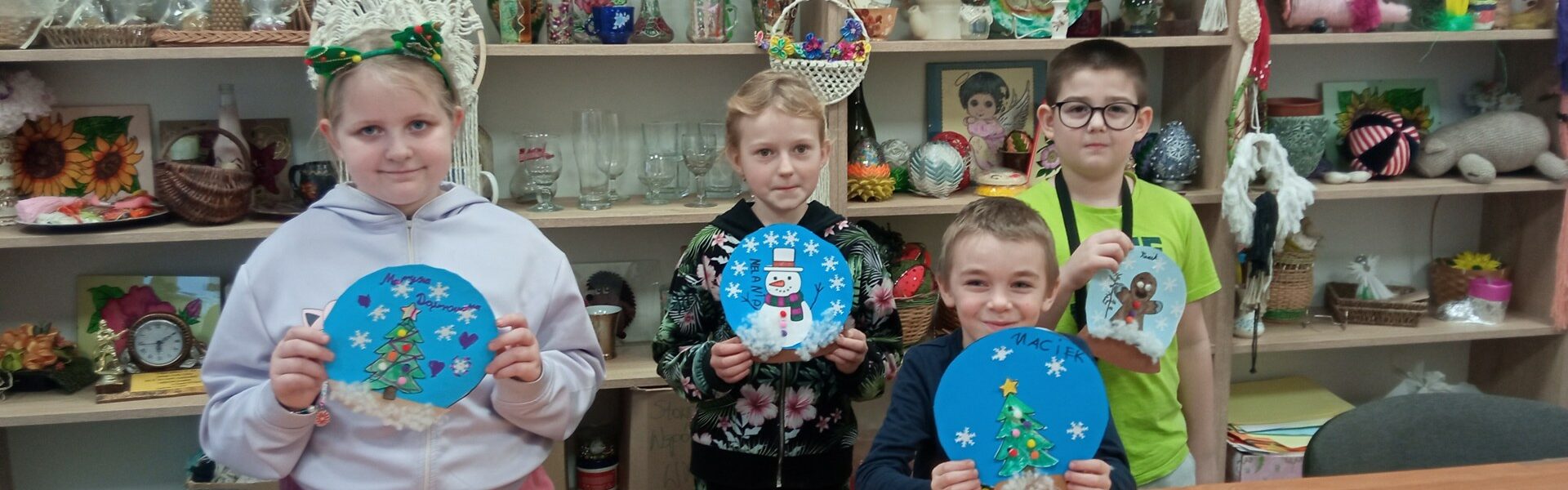 Uczestnicy pracowali z papierem, klejem, kolorowymi elementami i dodatkami, tworząc własne, niepowtarzalne zimowe kompozycje. W kulach pojawiły się świąteczne motywy, postacie i dekoracje, a każda praca była wyrazem indywidualnej kreatywności.