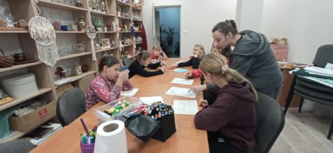 Zajęcia upłynęły w miłej, twórczej atmosferze, pełnej skupienia, rozmów i radości z efektów końcowych. Gotowe prace z pewnością staną się piękną świąteczną ozdobą 🎄✨