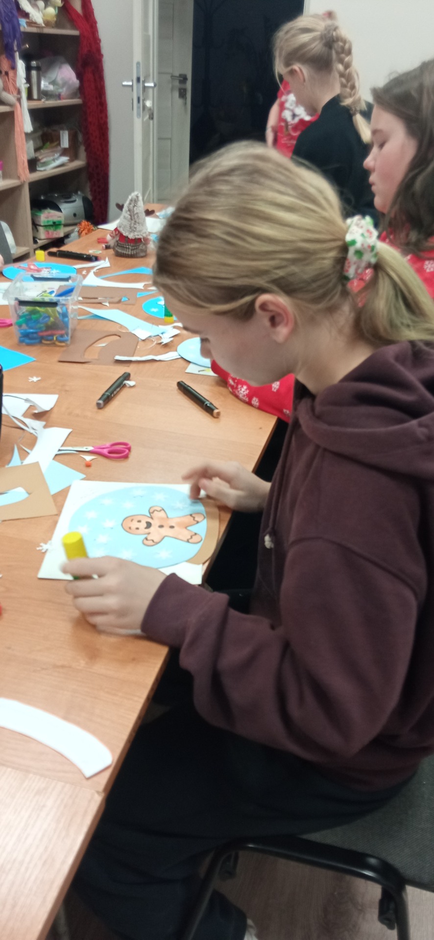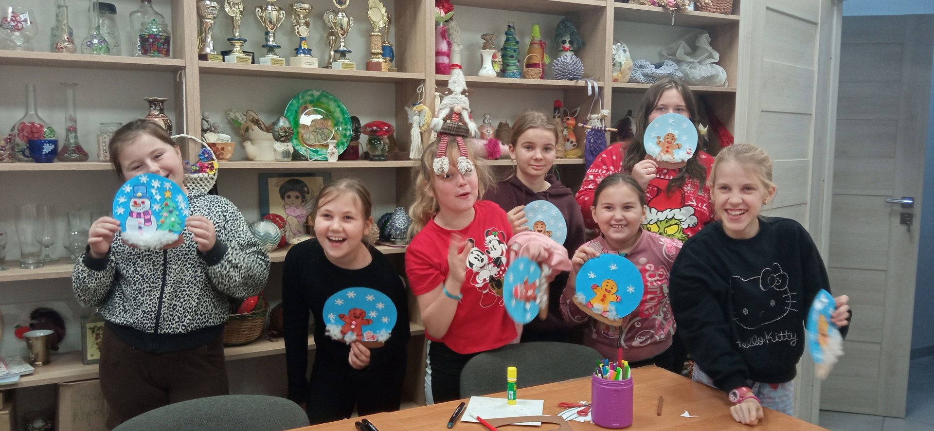 Uczestnicy pracowali z papierem, klejem, kolorowymi elementami i dodatkami, tworząc własne, niepowtarzalne zimowe kompozycje. W kulach pojawiły się świąteczne motywy, postacie i dekoracje, a każda praca była wyrazem indywidualnej kreatywności.