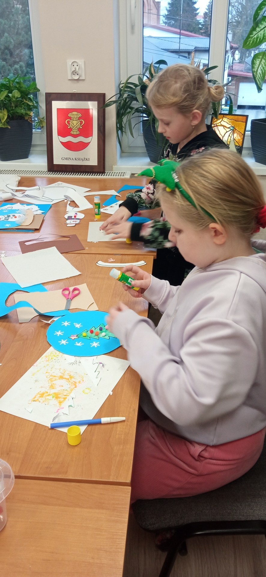 Podczas kolejnych zajęć plastycznych w Gminnym Ośrodku Kultury w Książkach dzieci wcieliły się w małych artystów i stworzyły ozdobne kule śnieżne na papierze – w wersji „na płasko” ❄️🎨
