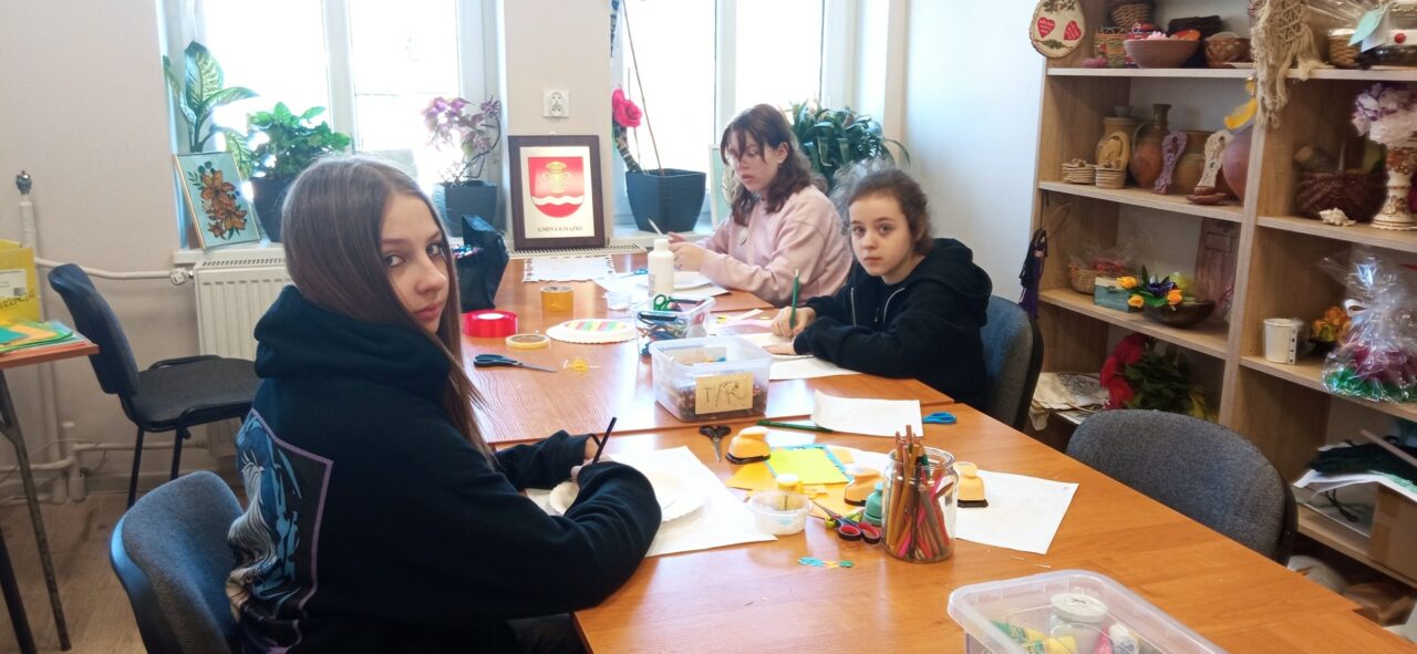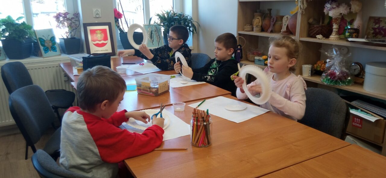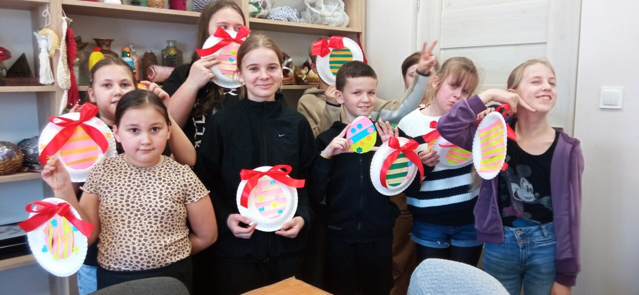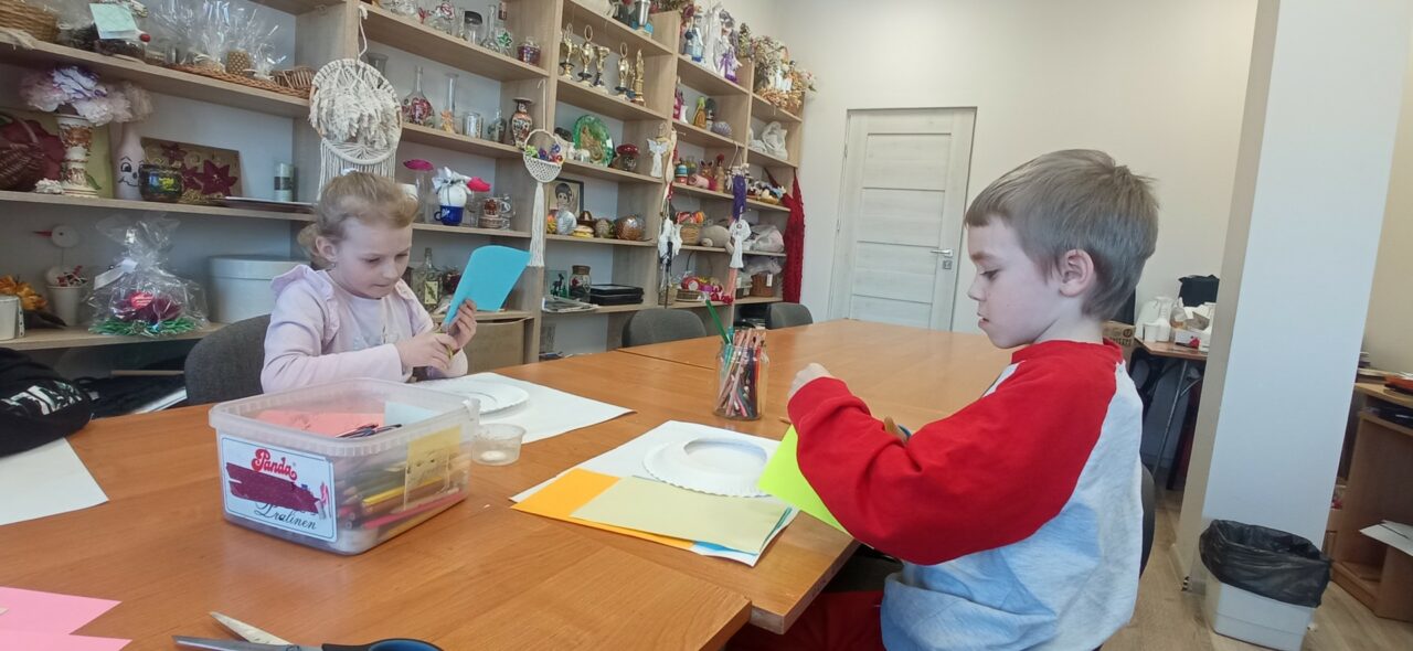 Mali adepci sztuk pięknych z ogromnym zaangażowaniem tworzyli pierwsze wiosenno-wielkanocne ozdoby. Powstały barwne pisanki, dekoracje z kokardkami i mnóstwo kreatywnych kompozycji, które wprowadziły do pracowni prawdziwie radosny klimat.