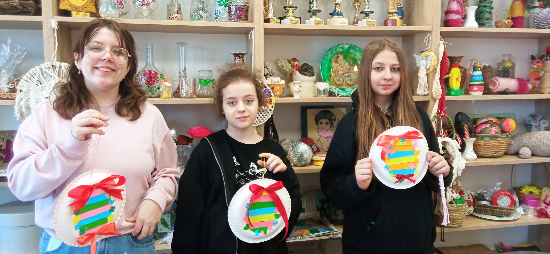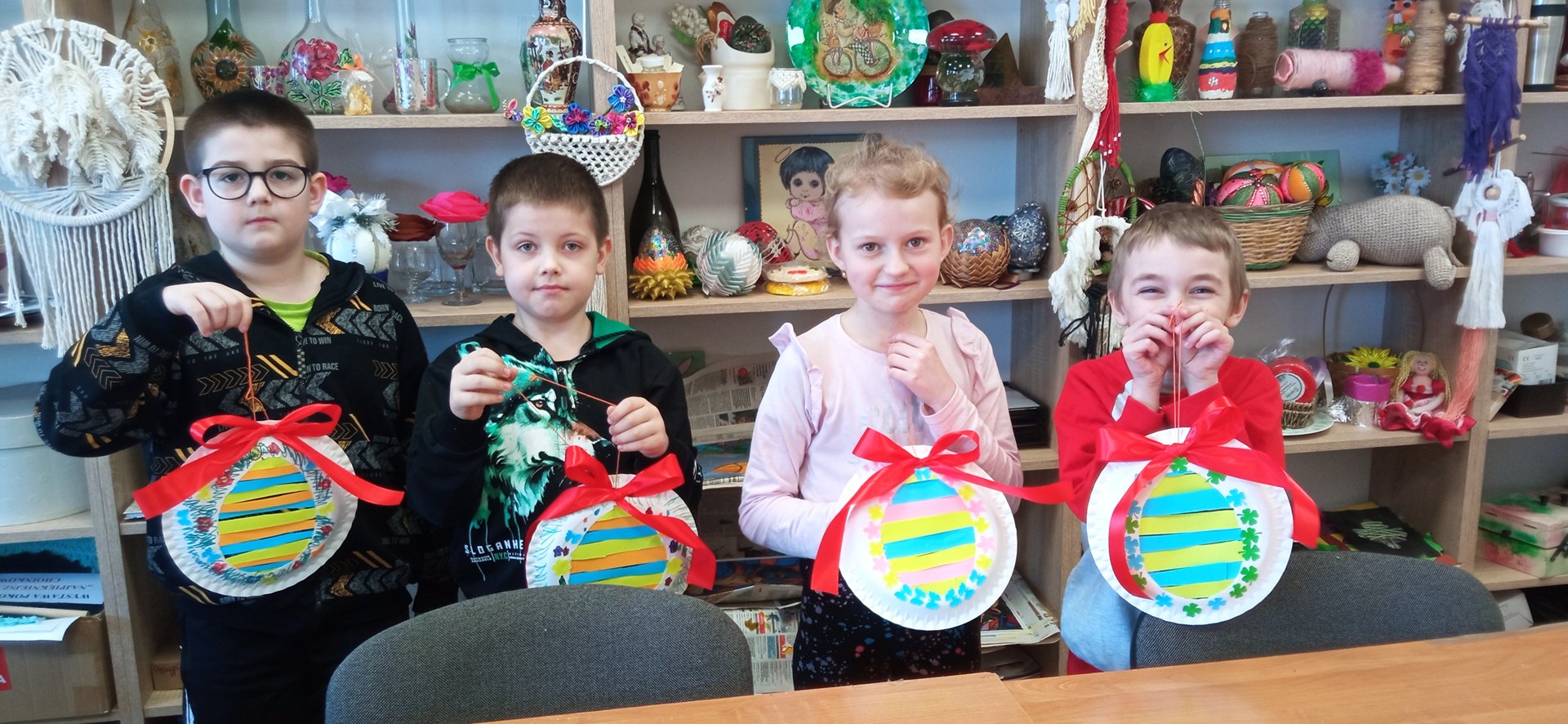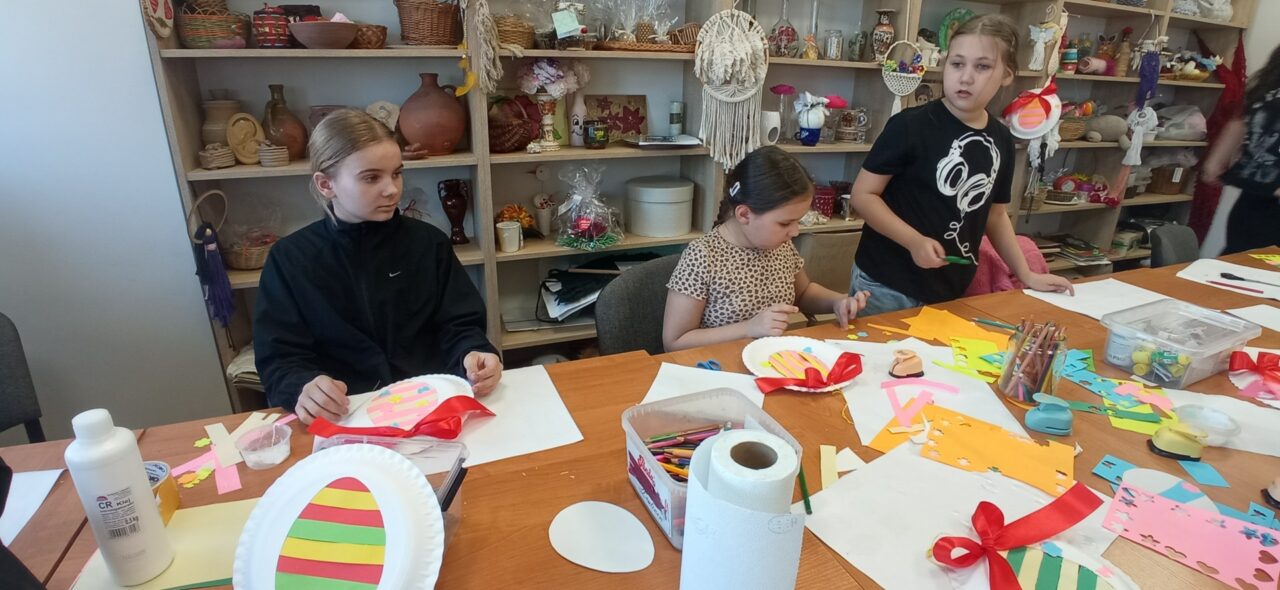 Mali adepci sztuk pięknych z ogromnym zaangażowaniem tworzyli pierwsze wiosenno-wielkanocne ozdoby. Powstały barwne pisanki, dekoracje z kokardkami i mnóstwo kreatywnych kompozycji, które wprowadziły do pracowni prawdziwie radosny klimat.