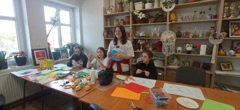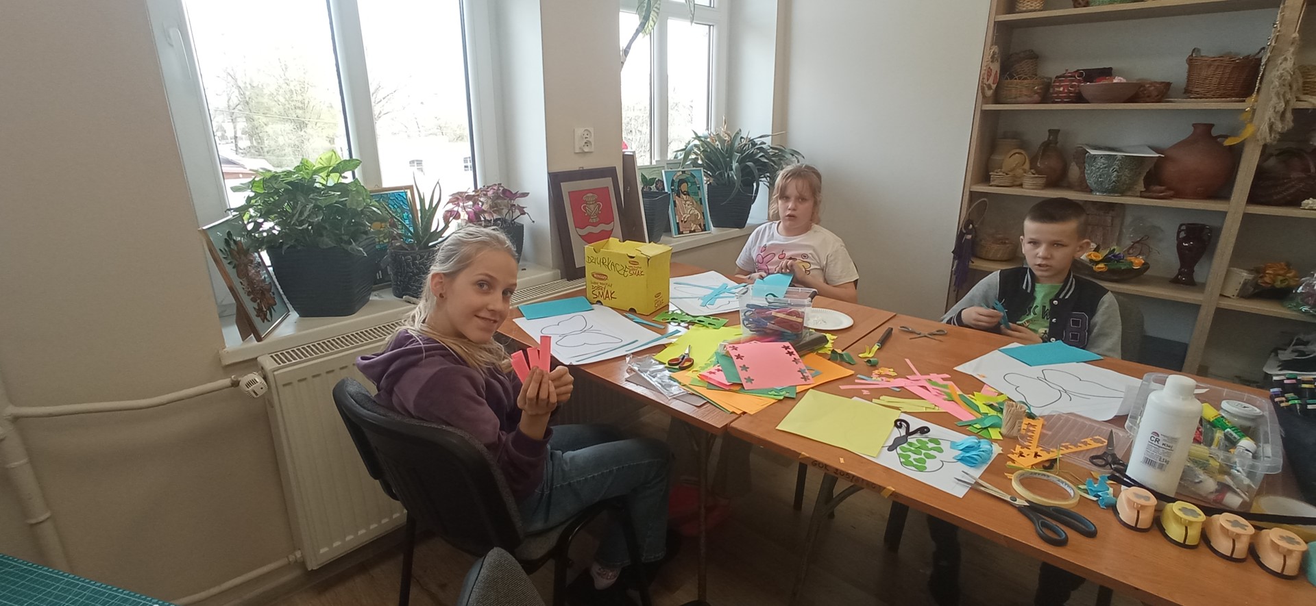 Tym razem uczestnicy pracowali na gotowych szablonach, które dekorowali według własnych pomysłów, wykorzystując technikę wycinanki. Kolorowy papier, nożyczki i klej wystarczyły, aby powstały niezwykle barwne i pomysłowe kompozycje ✂️🎨