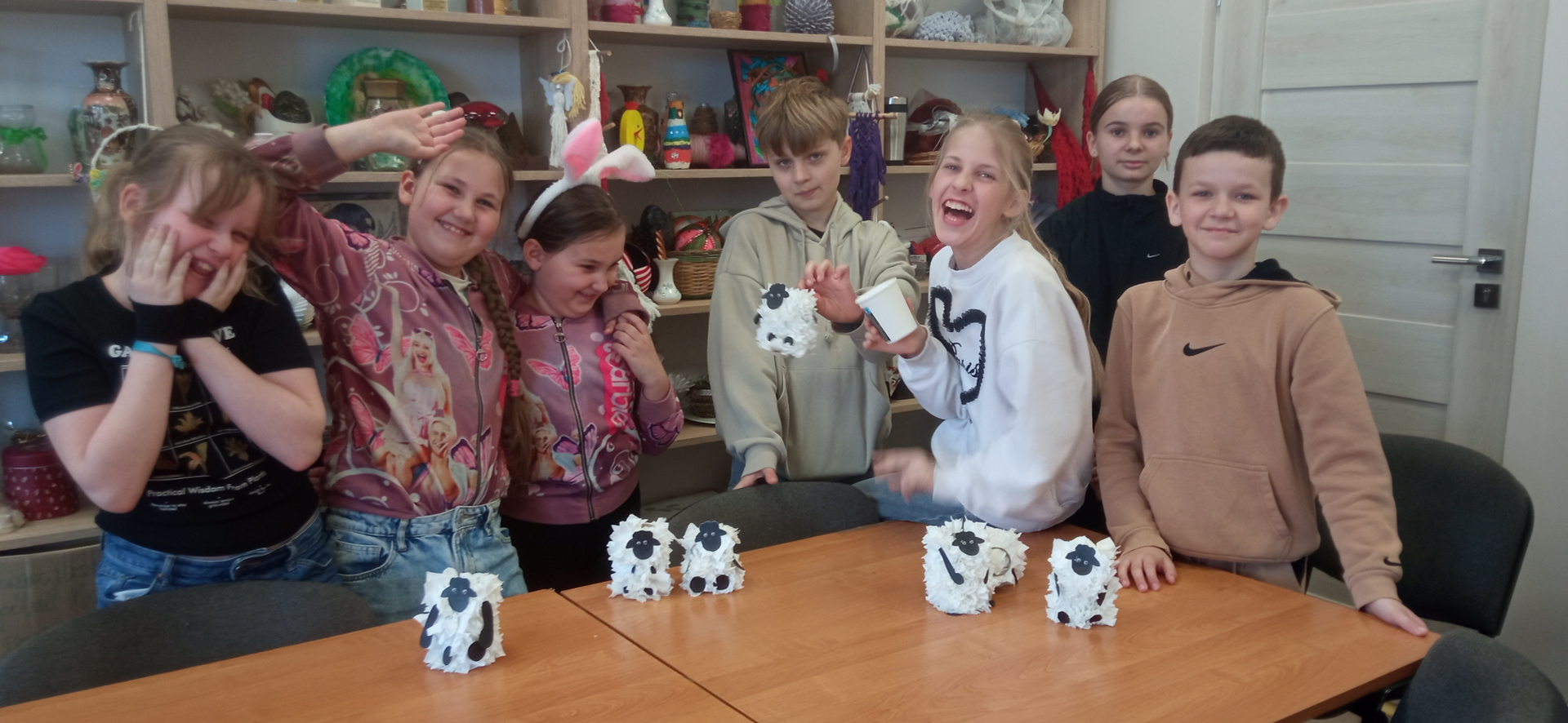 Było dużo wycinania, klejenia i kreatywnej pracy, a każdy baranek wyszedł wyjątkowy i niepowtarzalny 🐑✨ Uczestnicy z ogromnym zaangażowaniem podchodzili do swoich prac, rozwijając przy tym wyobraźnię i zdolności manualne.